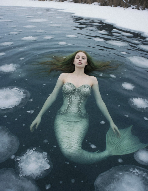 Подо льдом, точно в музейной витрине, в странной и нелепой позе, висела его русалка. Она была полужива (глаза медленно повели в его сторону). Борис застыл в немом ужасе. Потом хохот, дикий, истерический, вырвался из его груди и прокатился по безмолвному лесу. Он смеялся до слёз, катаясь по снегу.