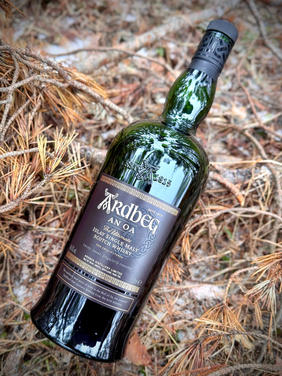 Здорова, народ! Бывают такие напитки, которые работают как телепорт. Открываешь пробку - и ты уже не в душном городе, а на берегу реки ранним утром, вокруг сосновый бор, а от вечернего костра тянется тонкая дымка, стелясь по влажной, усыпанной хвоей земле. Вот так я бы и описал нашего сегодняшнего гостя - Ardbeg An Oa! Лично для меня он стал именно таким проводником в походный вайб и рассветы на рыбалке. Забудьте сказки про "самый мягкий Ардбег". В нашем ангаре этот парень показал зубы, выдав такой индустриальный замес, что Василий Шпала на мгновение забыл про монтировку и начал искать сварочную маску. Этот виски не пытается понравиться - он просто вываливает на стол все ваши воспоминания: от сладкого чая в закопченном котелке до запаха разогретого битума. Данный Ardbeg назван в честь мыса Оа (Mull of Oa) на юге острова Айла, который защищает винокурню от яростных атлантических штормов. Состоит из спиртов, выдержанных в различных бочках, включая бочки из-под хереса Педро Хименес, из-п