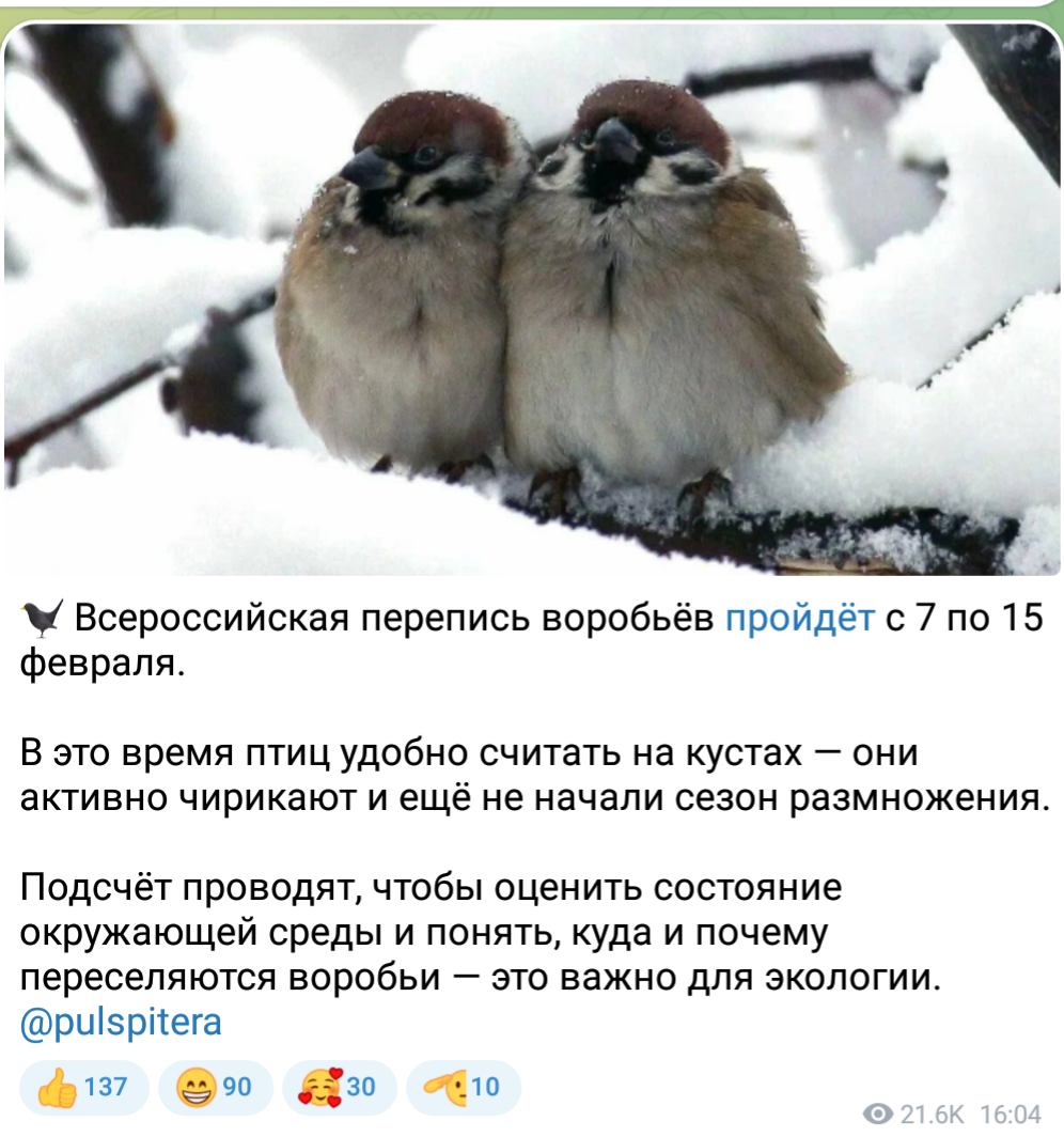 Сейчас кусты сирени у нас во дворе дома голые, и посчитать воробьев не составит труда. Хотела бы я посмотреть, как будут их считать. 😂А может самой начать? 😅