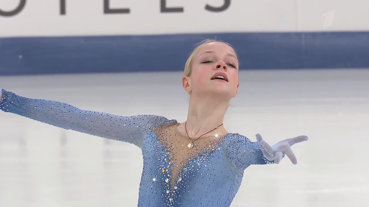 Алена Принева. Школа Этери Тутберидзе. 4Т - две галки и падение. Очень низкая высота. Падение и с 3Л. Остальной контент был исполнен на хорошем уровне. Но падать нельзя.