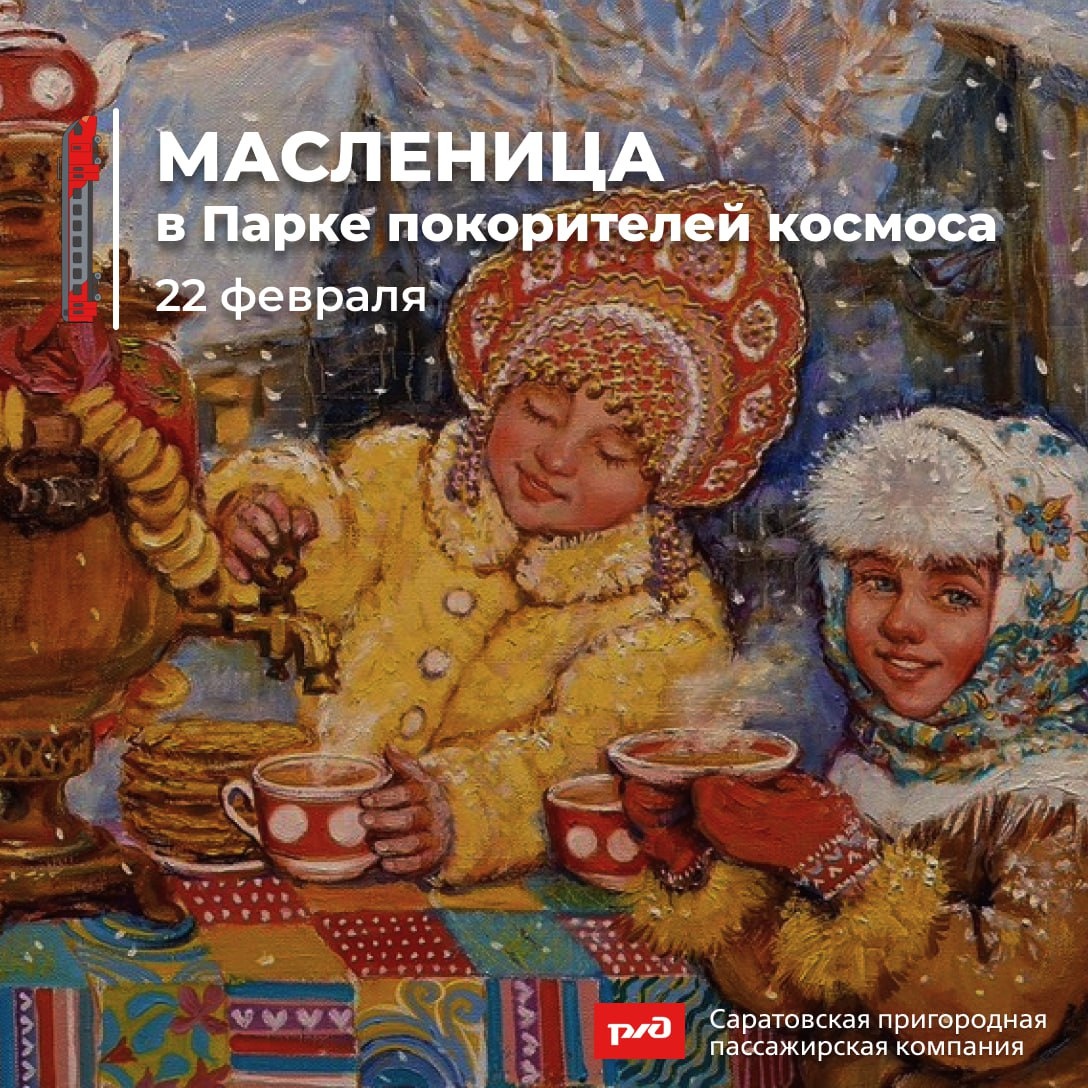 ! ☀️💫 Мечтали оказаться там, где началась космическая эпоха и угощают самыми вкусными блинами? Приглашаем встретить праздник Масленицы в Парке покорителей космоса — 22 февраля 2026 года! У нас состоится не просто экскурсия о космических достижениях нашей страны, а самое яркое событие зимы! 🔥🚂 В рамках тура запланирована поездка на пригородном поезде №6474 Татищево — Анисовка (отправление со ст. Саратов‑1 в 8:34, прибытие на о.п. Приволжский в 9:21). Экскурсия начинается уже в вагоне, где участники зарядятся праздничным настроением, а также узнают об интересных фактах детства и юности первого космонавта планеты! Далее экскурсанты продолжат свое путешествие на организованном автобусе до Парка покорителей космоса. 🤩Участники увидят легендарный «космический» автобус ЛАЗ, вдохновляющие цитаты Ю. А. Гагарина, кедровник, галерею космонавтики и стену космической славы, маршрут «108 минут», стелу на месте приземления и памятник первому космонавту. Уверены, что полученные эмоции надолго о