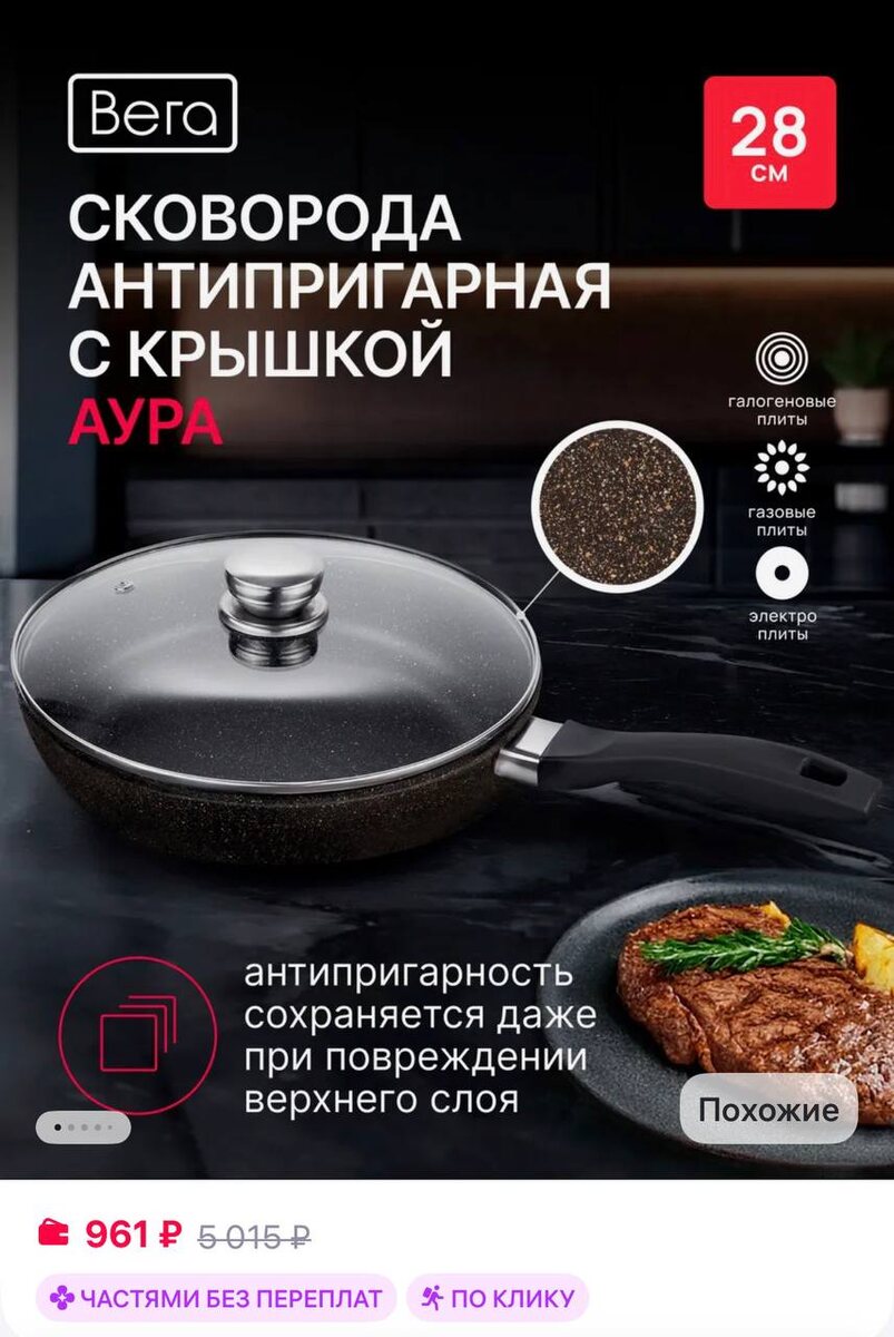😀😀😀Вега Сковорода с крышкой антипригарная глубокая 28 см