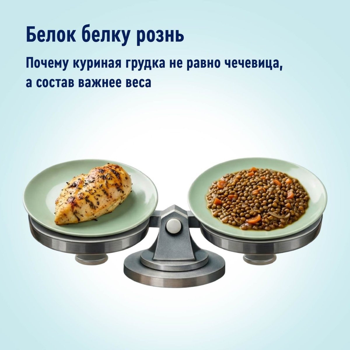 Белок белку рознь. Почему куриная грудка ≠ чечевица, а состав важнее веса Кратко: потому что не все белки одинаково полезны. Ценность белка определяется не только усвояемостью, но и набором аминокислот – «кирпичиков», на которые он распадается в пищеварительном тракте. Лучшая стратегия – комбинировать разные источники или, по крайней мере, использовать белки с самым подходящим для человека аминокислотным составом. К ним относятся, например, молочные белки (казеин и сывороточный белок) и белок куриного яйца. Даже краткая часть получилась в этот раз не такой уж и краткой. А подробная будет еще длиннее, готовьтесь :) Но там – все по делу. Когда мы съедаем кусок мяса, ложку творога или порцию чечевицы, наш организм не использует эти белки «целиком». Сначала пищеварительная система расщепляет их до базовых компонентов – аминокислот. Именно из этого «конструктора» организм человека затем собирает собственные белки: для мышц, иммунных клеток, ферментов, гормонов и других клеток. Всего существ