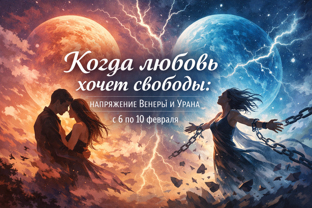 С 6 по 10 февраля на небе формируется напряжённый аспект между Венерой и Ураном, а точный аспект будет 8 января. И это тот самый транзит, который редко проходит тихо. Венера — про отношения, привязанность, ценности, удовольствие.