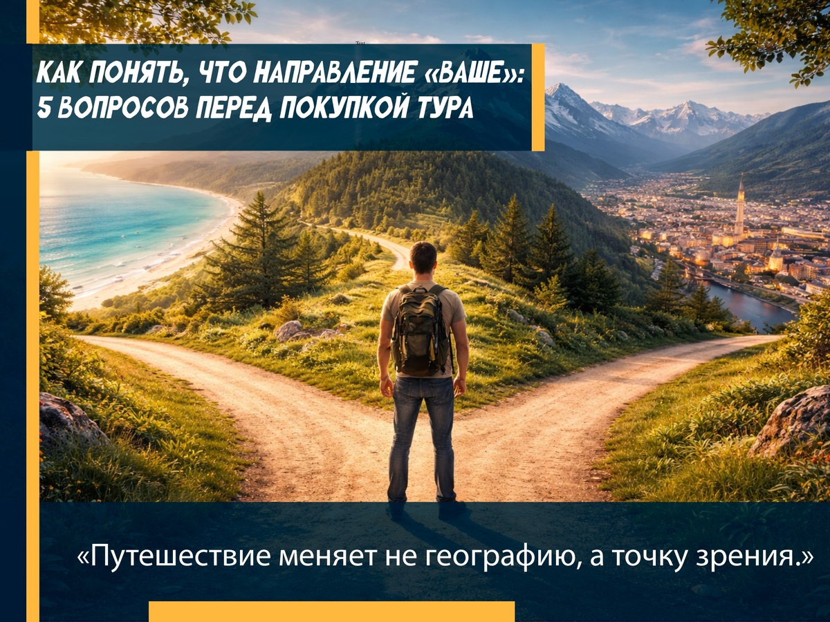 Иногда мы выбираем страну по красивым фото — и возвращаемся уставшими. А иногда место будто «попадает» точно в состояние. Вот как отличить одно от другого. 1️⃣ Зачем вам этот отпуск — сбежать или наполниться? Если хочется тишины и восстановления — шумный мегаполис вряд ли подойдёт. Если энергии и впечатлений — уединённый остров может разочаровать. 2️⃣ Как вы хотите чувствовать себя утром? В ритме города, с кофе на шумной улице? Или босиком, медленно, без планов? 3️⃣ Что для вас отдых сейчас: комфорт или трансформация? Иногда нужно просто выдохнуть. А иногда — сменить картинку, чтобы увидеть жизнь под другим углом. 4️⃣ С кем вы едете — и кем хотите быть рядом с ними? Семья, партнёр, друзья или вы наедине с собой — направление должно это поддерживать. 5️⃣ Представьте возвращение домой. Что вы привозите? Загар и фото — или новое ощущение себя? Если ответы складываются в одну картину —... Тур1 | поиск туров → https://tur-1.ru