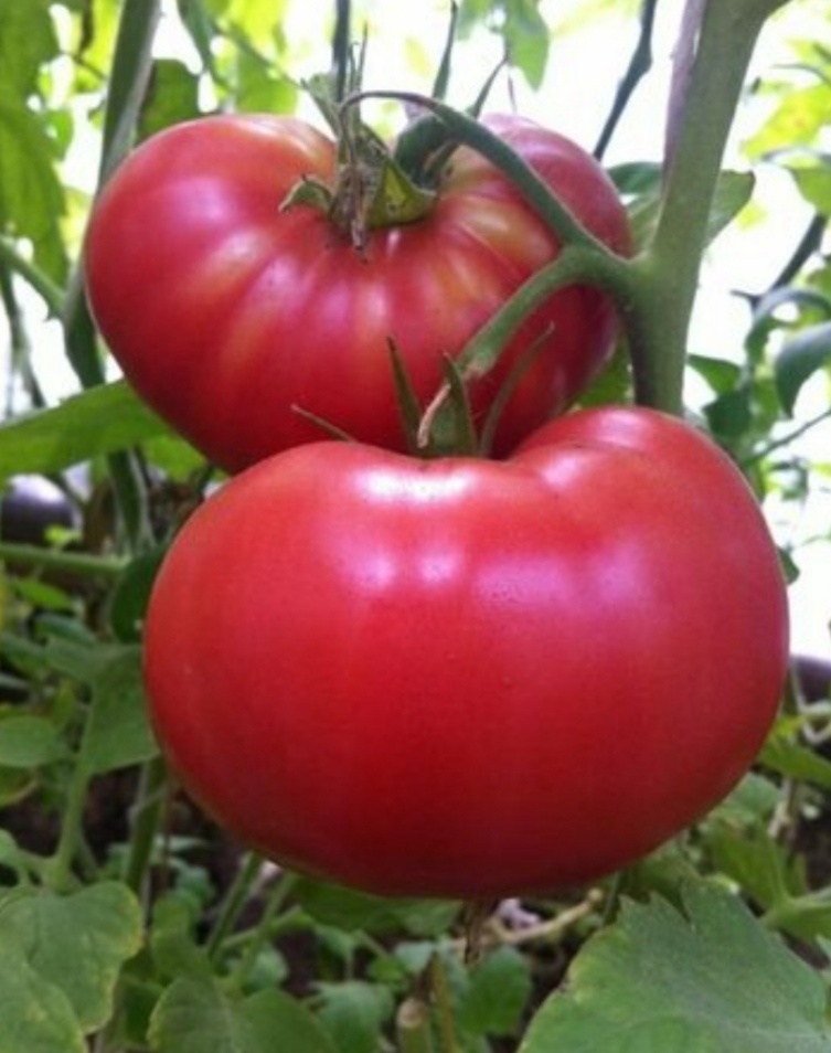 Высокорослый среднеспелый индетерминантный сорт, который подходит как для выращивания как в теплице, так и в открытом грунте. Высота куста варьируется от 1,5 до 2,5 м, в зависимости от условий произрастания. Любимец многих огородников отличается крупными плодами, средний вес которых составляет 300-400 г, но при хорошей агротехнике может доходить и до 700 г. Урожай с одного куста составляет 3-4 кг. Срок созревания – 115-125 дней с момента появления всходов. Плоды подходят для салатов и овощной нарезки, также из них получается отличная томатная паста.