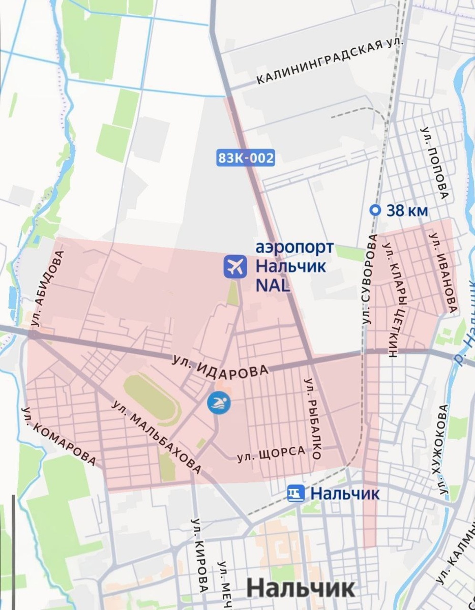 : • «Стрелка» • «Богданка» • ул. Комарова — Эльбрусская — Мальбахова • ул. Т. Идарова — Абидова — Мовсисяна • Гагарина — Киримова — Фурманова — Кабардинская • ул. Кабардинская — Т. Идарова — Кирова • ул. Т. Идарова — Суворова — Семашко • Суворова — Бесланеева — Канкошева — Попова • ул. Маяковского — Красноармейская — Семашко • ул. Т. Идарова (от Кабардинской до Суворова) • ул. Кабардинская (от Т. Идарова до 2-го Промпроезда)