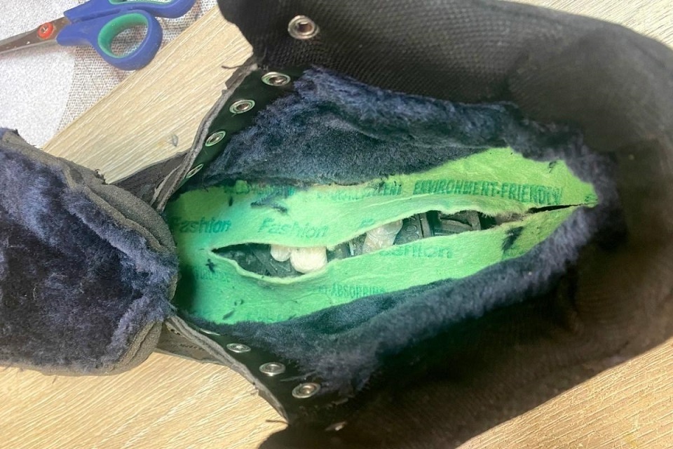 При досмотре посылок, переданных одному из арестованных, сотрудники следственного изолятора обнаружили три свертка, спрятанных в подошве кроссовок. В результате экспертизы было установлено, что в свертках содержалось 1,8 грамма метилэфедрона.