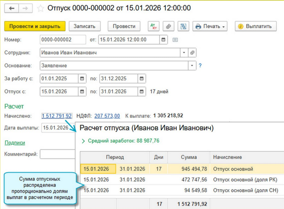Кое-что новое в вашей 1С: выделение долей районных коэффициентов и северных надбавок в отпускных c 2026 года ✌️