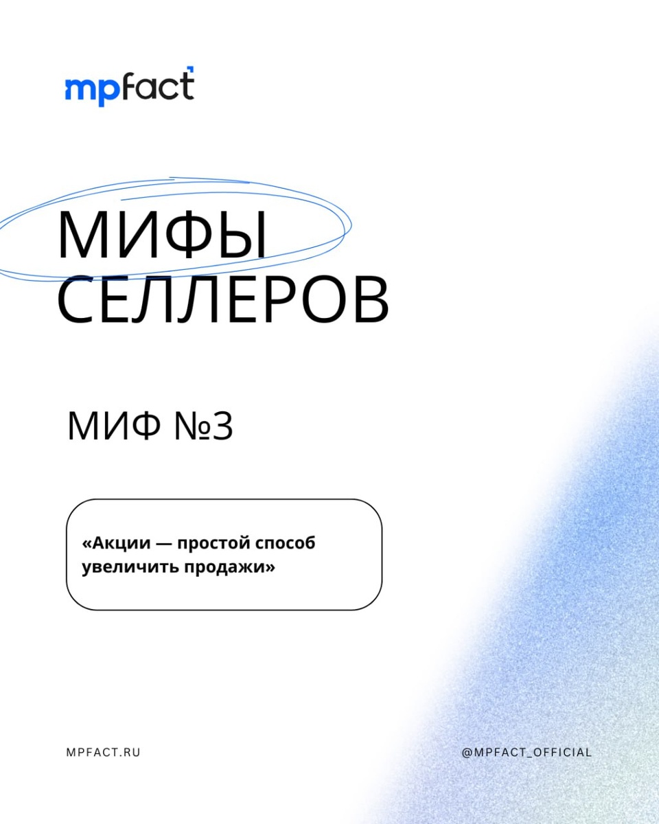 «Акции — простой способ увеличить продажи» «Промоакции от маркетплейсов всегда выгодны» Логика понятная: «Дам скидку → получу больше заказов → вырасту». Формально — да. По факту — акции без подготовки чаще ускоряют убыток, чем рост. До этого разбирали миф №1 и миф №2. История №1 Иван продает футболки. Заходит в акцию, дает хорошую скидку. Но: 💙 карточка слабо проработана 💙 описание без ключей 💙фото старые 💙 размерная сетка устаревшая У конкурентов: 💙 тот же товар 💙 но сильный контент Итог? Скидка есть — заказов нет. Покупатели выбрали хорошо проработанную карточку, а не самую дешевую. 💙 Акция не спасает плохой контент. История №2 Ольга продает чехлы для смартфонов. Заходит в акцию, спрос резко растет. Но она не рассчитала остатки. Через 2 дня товар закончился. Карточка просела в выдаче. Когда новая партия пришла: 💙 акция закончилась 💙 спрос упал 💙 позиции потеряны Теперь нужно: 💙 снова вливать рекламу 💙 возвращать карточку наверх 💙 тратить деньги, которых могло