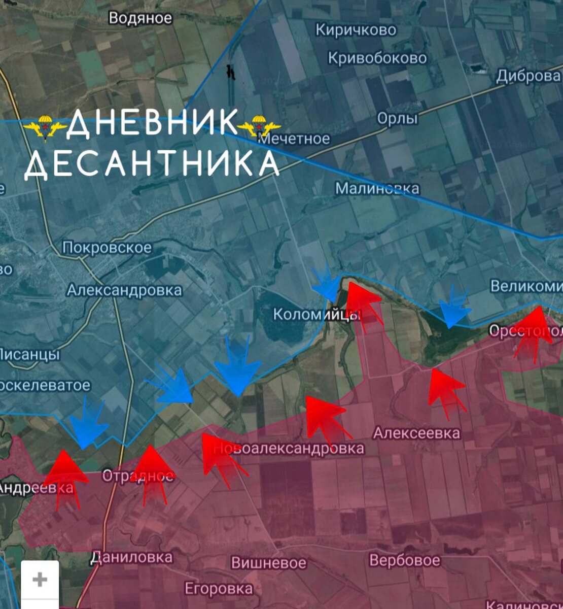 ▫️Александровский участок. Идут позиционные бои, активных манёвров не наблюдается. От Братского до Тихого взаимный обмен ударами ФПВ и сбросами, мы не даем противнику заскакивать, они не дают нам. ▫️На участке Новопавловки. В районе Ивановки продолжаются тяжёлые боевые действия. Над севером села был восстановлен контроль подразделениями ВС РФ, Вообще северная часть Ивановки это высота с лесным участком, вся остальная часть в низине, по этой причине продвижение осложнялось, а противник нагнав дополнительные расчеты БПЛА ненадолго вернул контроль, но в ходе ожесточенных боев снова Ивановка наша. Немного продвинулись севернее, выбив ВСУ до Тарасовки. В Новопавловке штурмовые группы ВС РФ расширили контроль территории с южной и восточной частей села. С востока зачищена вся территория до населенного пункта. Центр Новопавловки в серой зоне, без устойчивого закрепления ни одной из сторон. Здесь ландшафт аналогичен Ивановки, враг держится пока на высоте. ▫️ На участке Новониколаевки: Про