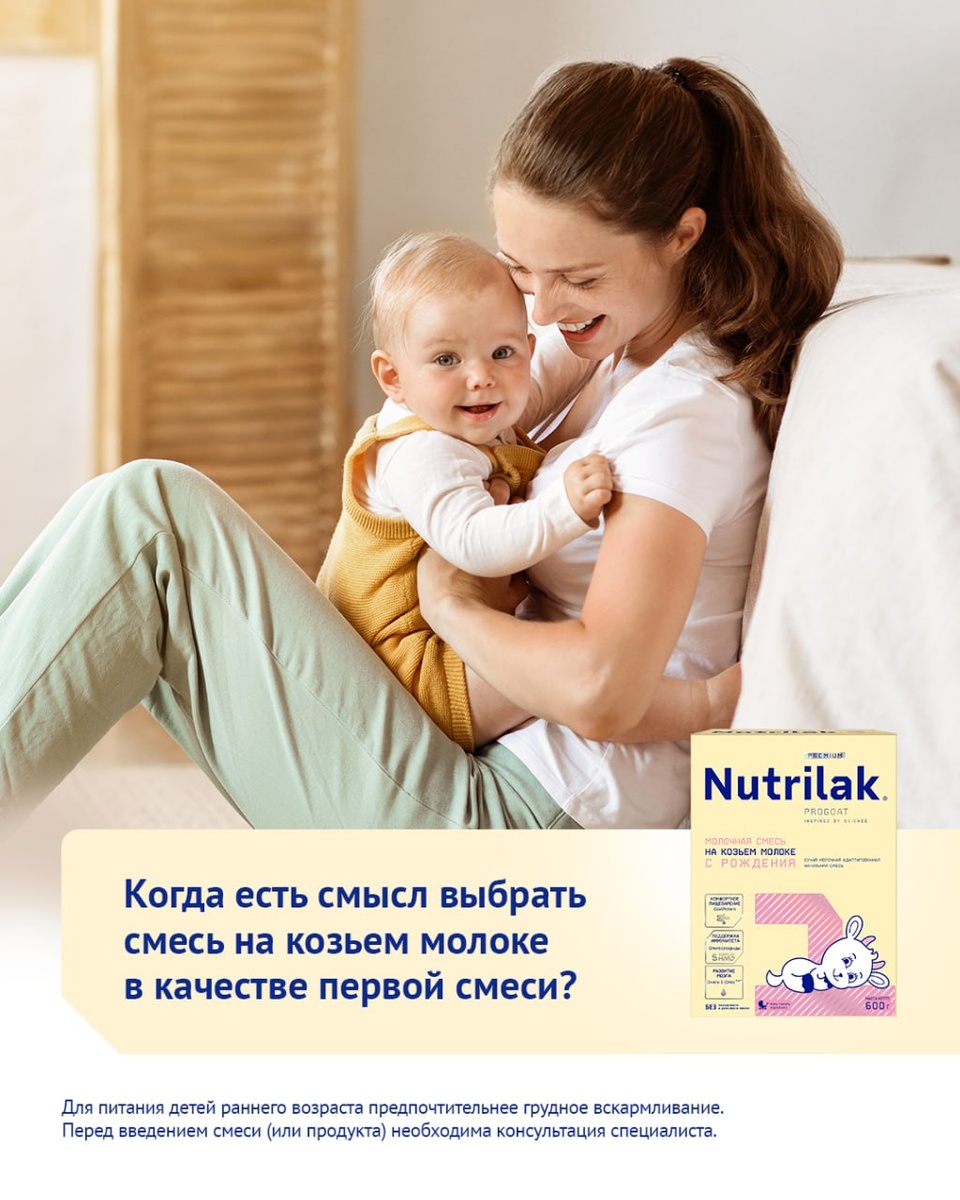 💙💙💙 Когда есть смысл выбрать смесь на козьем молоке в качестве первой смеси? 🥛 Очевидно, эталон питания для ребенка – это грудное вскармливание. Если же такой возможности нет, используют детские формулы. Смеси на козьем молоке, такие как Nutrilak Premium 1, имеют важные отличительные особенности за счет своего состава. Такую смесь есть смысл выбирать: 🟣 Для профилактики функциональных расстройств пищеварения. Белки козьего молока (в первую очередь основной, казеин), по своей природе легче и меньше, чем у коровьего. Поэтому и перевариваются они проще. Таким образом, смесь помогает в профилактике колик и запоров 🟣 Для поддержки иммунитета. 5-HMO* complex – комплекс из 5 основных олигосахаридов, структурно идентичных наиболее распространенным видам олигосахаридов, которые присутствуют в грудном молоке для поддержки иммунной системы и защиты от инфекций. Произведены биотехнологическим способом 🟣 Смесь не содержит пальмового и рапсового масел * НМО – сокращенное обозначение оли