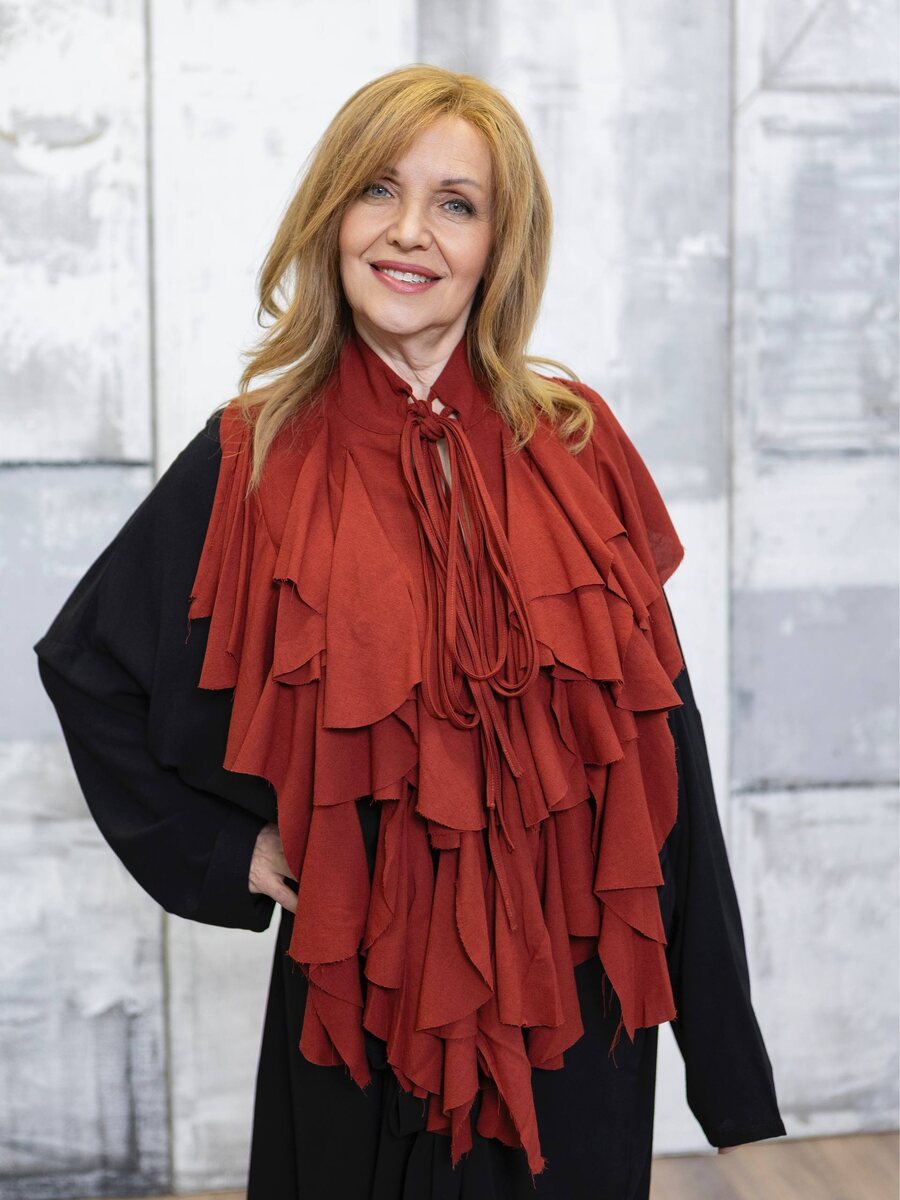 Это платье — про свободу, тактильное удовольствие и выразительную простоту. Мягкая вискоза с деликатным добавлением шерсти приятно ощущается на коже, дарит комфорт, лёгкое тепло и красиво реагирует на движение. Свободный, струящийся силуэт подчёркивает женственность без жёстких линий, а завязки на талии позволяют легко регулировать посадку, подстраивая образ под настроение. V-образный вырез визуально вытягивает линию шеи и добавляет образу изящества. Длинные рукава с мягкой посадкой усиливают ощущение воздушности и непринуждённой элегантности, создавая баланс между расслабленностью и продуманным стилем. Особый акцент — съёмный асимметричный воротник в насыщенном красном оттенке. Он привносит в образ бохо-настроение, энергию и характер, делая платье выразительным и запоминающимся. С воротником — для эффектного выхода и смелого стилистического жеста, без него — для чистого, минималистичного силуэта, который легко адаптируется к повседневному ритму. Обувь от бренда TRIPPEN сделает люб