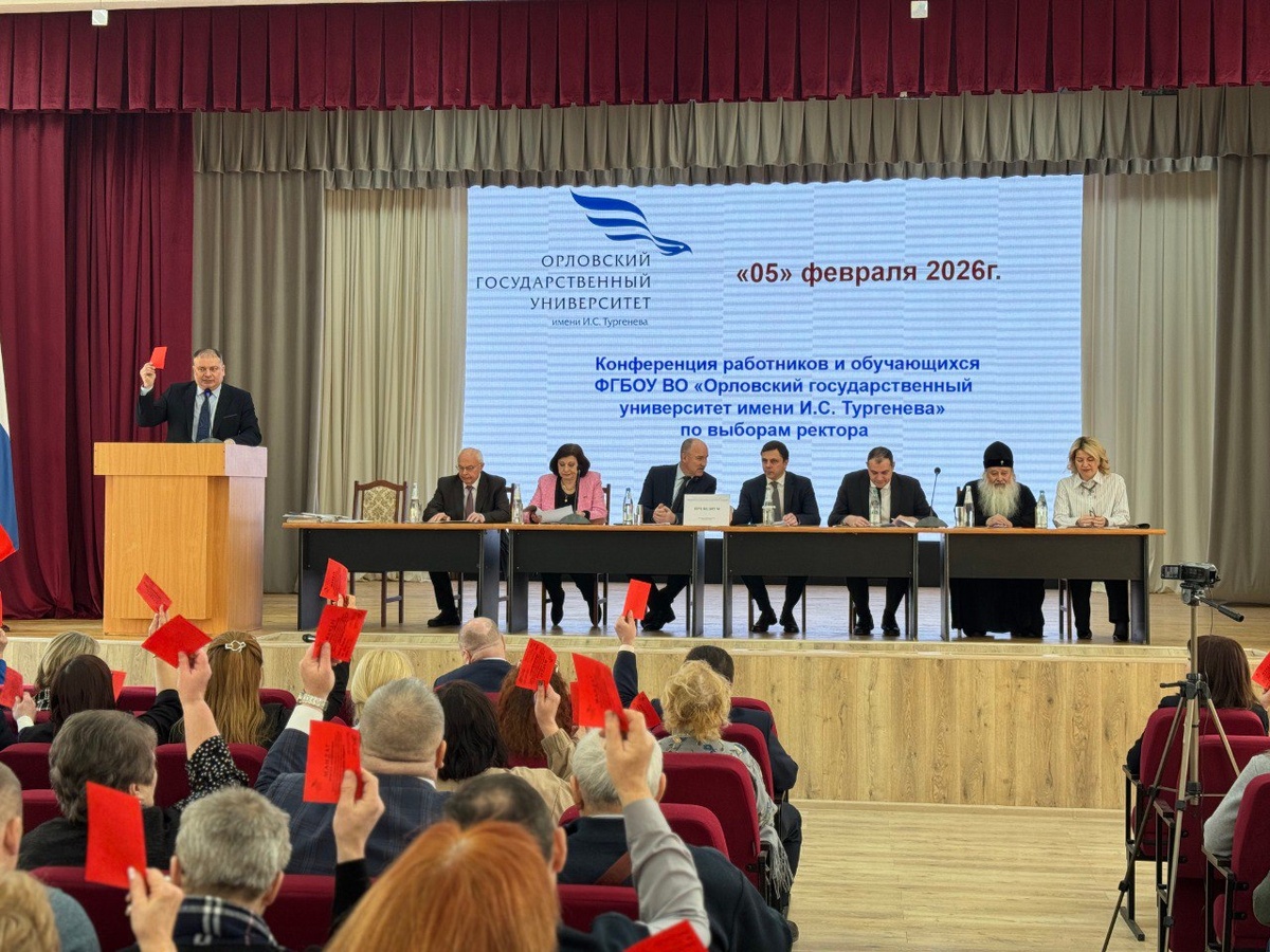 5 февраля 2026 года состоялась конференция работников и обучающихся федерального государственного бюджетного образовательного учреждения высшего образования «Орловский государственный университет имени И.С. Тургенева» в ходе которой прошли выборы на должность ректора федерального государственного бюджетного образовательного учреждения высшего образования «Орловский государственный университет имени И.С. Тургенева». В президиум конференции вошли Губернатор Орловской области Андрей Клычков, Председатель Орловского областного Совета народных депутатов Леонид Музалевский, депутат Государственной Думы Федерального Собрания РФ Ольга Пилипенко, главный федеральный инспектор по Орловской области аппарата полномочного представителя Президента Российской Федерации в ЦФО Эдуард Голованев, митрополит Орловский и Болховский Тихон, научный руководитель ОГУ имени И.С. Тургенева Вячеслав Голенков, и.о. первого проректора по образовательной деятельности Оксана Леонова. На должность ректора федераль
