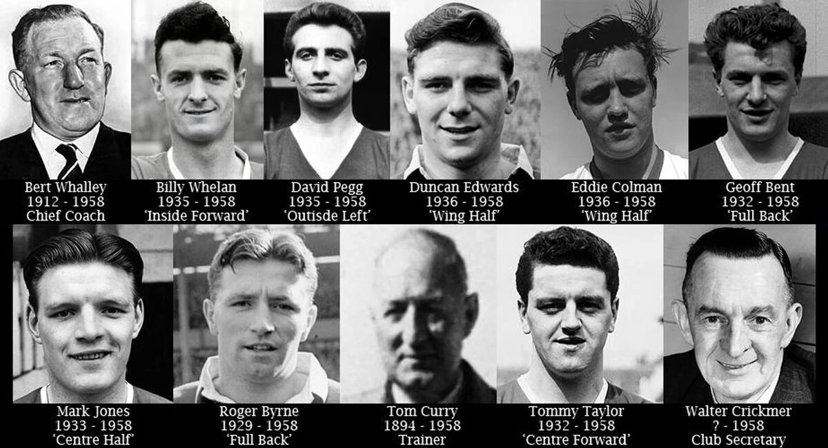 6 февраля 1958 года в аэропорту Мюнхена потерпел крушение самолет, на борту которого находились футболисты, тренеры и сотрудники «Манчестер Юнайтед». Команда возвращалась в Манчестер из Белграда после матча Кубка европейских чемпионов против «Црвены Звезды», по итогам которого англичане вышли в полуфинал турнира. Самолет совершил промежуточную посадку в Мюнхене для дозаправки. Две попытки взлета пилоты были вынуждены прервать из-за колебаний в работе двигателей. К моменту третьей попытки погодные условия резко ухудшились: начался сильный снегопад. Разгоняясь по взлетно-посадочной полосе, лайнер попал в снежную кашу, не смог набрать необходимую скорость, выкатился за пределы полосы и врезался сначала в ограждение, а затем в здание рядом с аэропортом. В результате катастрофы погибли 23 человека из 44 находившихся на борту. Среди них — восемь футболистов основного состава «Манчестер Юнайтед», три представителя тренерского штаба, восемь журналистов, два члена экипажа, туристический агент и