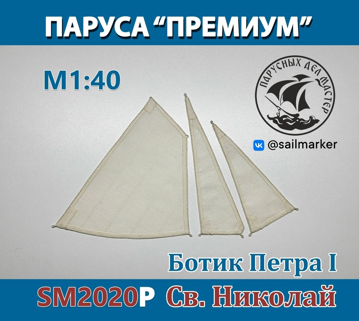 Симферопольская "Парусных дел мастер" выпустила комплект готовых парусов (каталожный номер SM2020P) для картонной модели ботика Петра