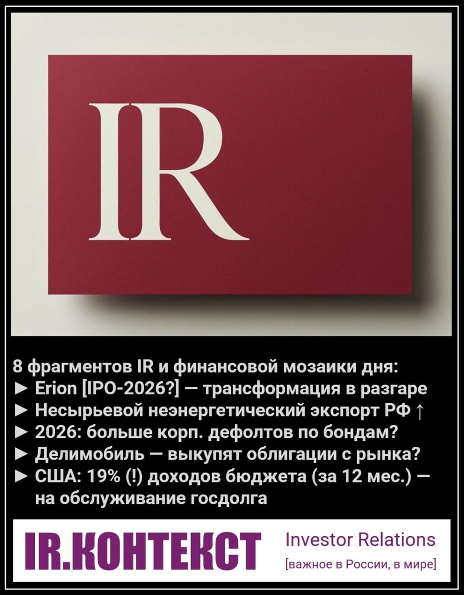 06.02.2026 Новости IPO-претендентов ► Erion (экосистемный холдинг ПАО «МТС») [IPO-2026?] — МТС закрывает все направления, объединенные в 2025 году под новым брендом Erion и не связанные с телекоммуникациями. Вертикаль Web Services (MWS), куда входят IT-продукты и облачные решения, будет присоединена к МТС, часть активов — передана в управление АФК «Система». ПАО «МТС» продолжает трансформацию управленческой структуры своей дочерней компании ООО «Эрион», которая объединяет нетелеком-активы. Функции управляющей компании ООО «Эрион» будут изменены, советы директоров активов и их менеджмент усилены, получат большую самостоятельность и полномочия. Все компании экосистемы МТС сейчас выделены в отдельные, самостоятельные бизнесы со сформированными органами управления. Процесс принятия всех стратегических решений на уровне Группы компаний МТС остается прежним — через органы управления ПАО МТС. (Коммерсант, Компания) Формирование условий для следующей волны IPO (продолжение снижения КС в февр