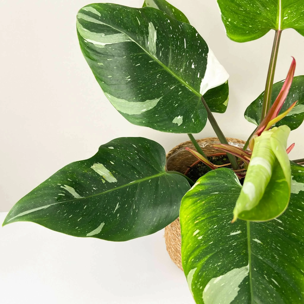Филодендрон «Вайт Принцесс» — один из самых желанных и сложных в выращивании пестролистных сортов. Его редкость обусловлена капризной генетикой и медленной скоростью роста. В отличие от своей розовой родственницы, «Принцесса» щедро дарит листья с обширными участками чистейшего белого или светло-кремового цвета, которые могут занимать до 80% листовой пластины! Каждый новый лист — это сюрприз и повод для восхищения. #Филодендрон #БелаяВариегатность