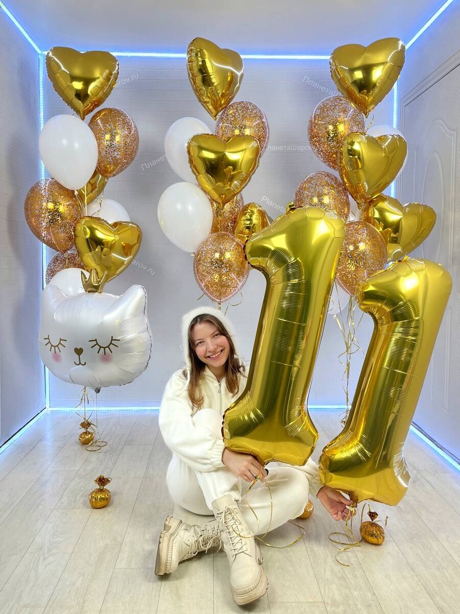 ФОНТАНЫ ИЗ ВОЗДУШНЫХ ШАРОВ С ЗОЛОТЫМИ СЕРДЦАМИ