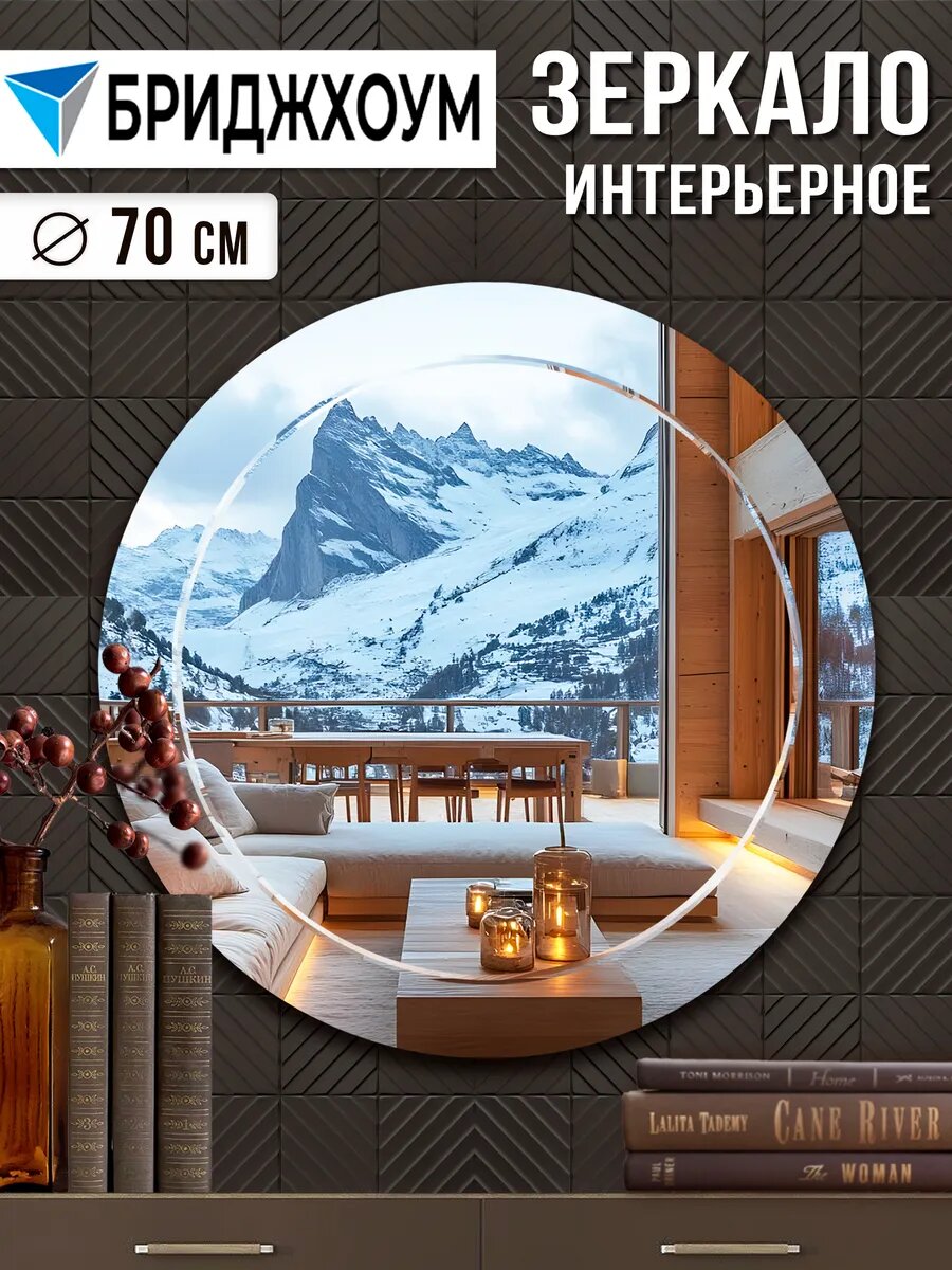 КРУГЛОЕ ЗЕРКАЛО НАСТЕННОЕ С ГРАВИРОВКОЙ 70 СМ