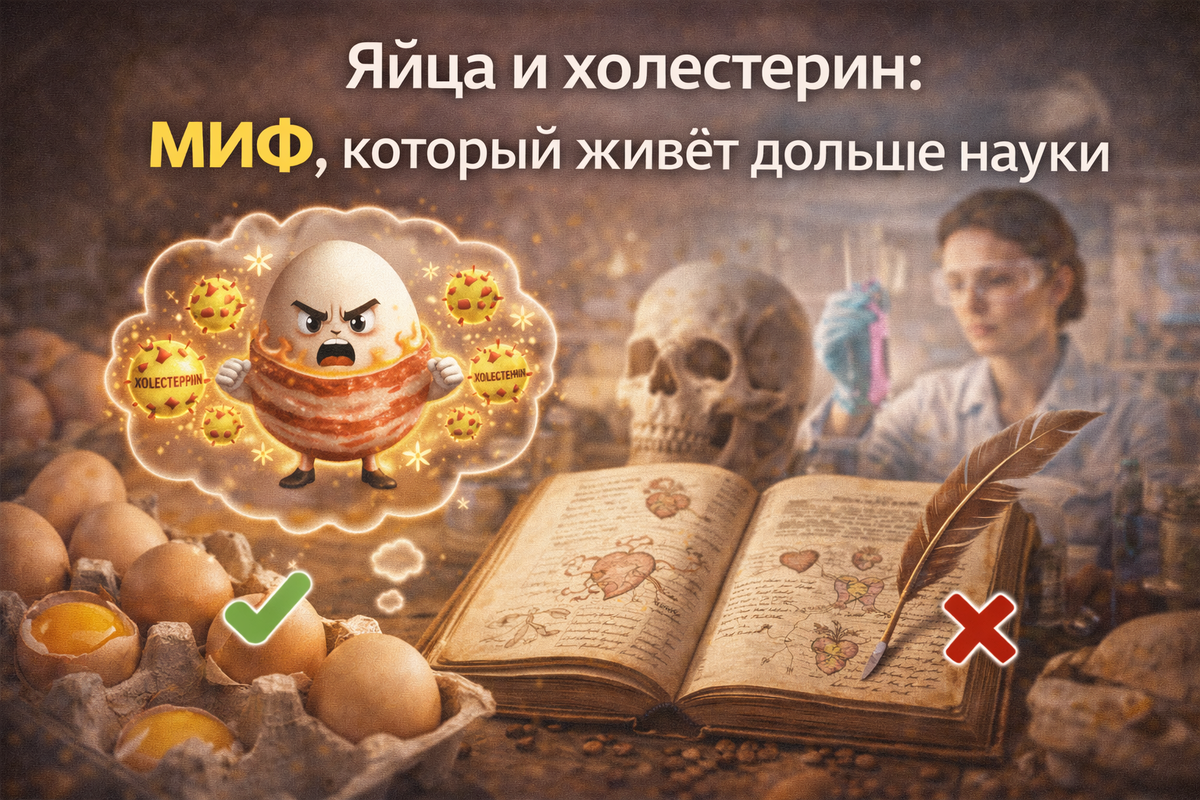 Про яйца нам успели рассказать всё. Что они “поднимают холестерин”, “бьют по сосудам”, “их можно только по праздникам”. Многие до сих пор едят яйца с лёгким чувством вины, будто делают что-то запрещённое. Но за последние 10–15 лет наука сильно продвинулась вперёд. И отношение к яйцам стало куда спокойнее, чем в эпоху советских таблиц и диетических страшилок. Современные исследования показывают: для большинства здоровых людей яйца не повышают риск сердечно-сосудистых заболеваний. Холестерин из еды и холестерин в крови — не одно и то же, а яйца давно перестали быть главным “виновником”. Истоки мифа уходят в середину XX века. Тогда учёные заметили связь между высоким холестерином в крови и болезнями сердца. Логика была простой: если в яйцах много холестерина, значит они повышают риск. Проблема в том, что эту гипотезу долго не проверяли напрямую. Яйца автоматически попали в “чёрный список”, хотя реальных доказательств было мало. Со временем выяснилось: уровень холестерина в крови гораздо с