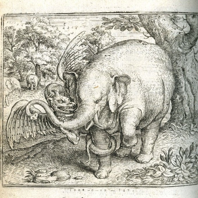 Плиний Старший в своем труде, датированном I веком, описывает древнюю битву между драконами и слонами