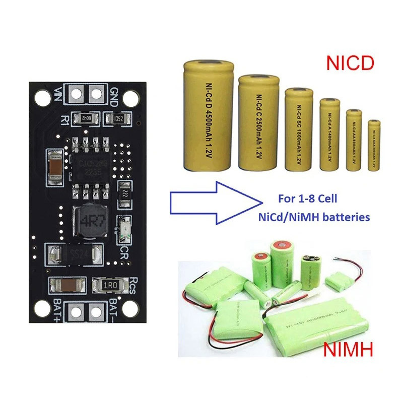 Плата для зарядки последовательно соединенных NiMH, NiCd аккумуляторов. Чип - CJC528 Купить на Алиэкспресс здесь Можно заряжать сборки от 1S до 8S Входное напряжение для всех плат: DC 4.5-5.5В (рекомендуется 5В) В сборке 1S резистор рядом с R1 отсутствует. В остальных вариантах 10.5Ком Наминал резистора R1 берется из таблицы Присутствует защита по питанию USB порта, защита от короткого замыкания и активация батареи с нулевым напряжением Светодиодная индикация: Собираем готовое зарядное устройство На заднюю сторону крепим радиатор, плата сильно греется. Добавляем разъём USB-C на вход. На выход «крокодилы» Устройство помещаем в термоусадочную трубку и тестим Заявленные параметры выполняются: для платы 1S: DC 1.35-1.7 V, зарядный ток: 230-240 mA Температура Температура высокая. Лучше не помещать в отсек с батарейками В целом плата достойная. Можно использовать в своих проектах. Как я и сделал