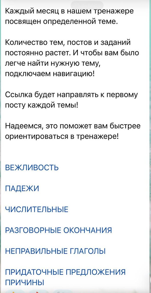 ! 🎉 С февраля в нашем онлайн-тренажере корейского языка появилось два крутых обновления: 1️⃣ Навигация по всем предыдущим темам Присоединились недавно? Не проблема! Теперь вы можете в любой момент вернуться к темам, которые изучались до вас. А если вы с нами давно и хотите что-то повторить — легко найдете нужный материал в закрепленном посте. 2️⃣ Схематичное объяснение грамматики Добавили наглядные схемы к каждой конструкции — так материал усваивается быстрее и проще! При этом подробные текстовые объяснения тоже сохранили, чтобы вы могли выбрать удобный формат. 🔥 Почему стоит заниматься в нашем тренажере? ✅ Каждый месяц новая тема и ее закрепление — системное погружение в язык ✅ Грамматика + лексика + практика в одном месте ✅ Упражнения с автопроверкой — учитесь самостоятельно ✅ На тарифе ВИП - обратная связь от преподавателей! ✅ 10-15 минут в день, и возврат к любой теме в любой момент. ✅ Доступ ко всем материалам 24/7 с любого устройства ✅ Стоимость месячной подписки от 870 руб