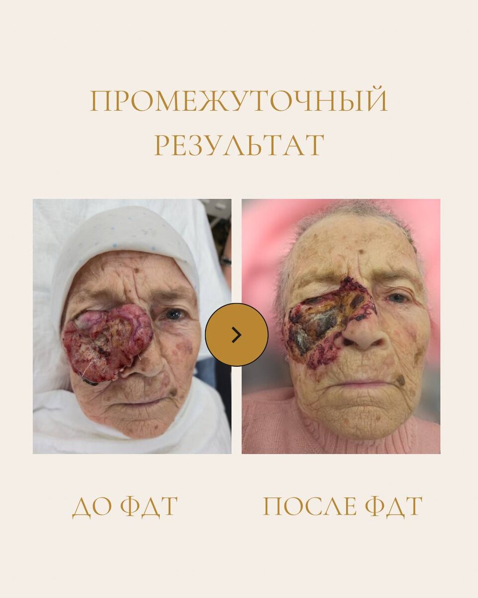 тканей лица. Опухоль полностью разрушена, дно раны заполнено грануляционной тканью с участками некроза. 📌Запись на прием и вопросы для первичной консультации WhatsApp и Telegram: +79914200351. ☎️ 8(800)500-21-93 ⏰ 9:30-17:00 https://www.laserterapy.ru/