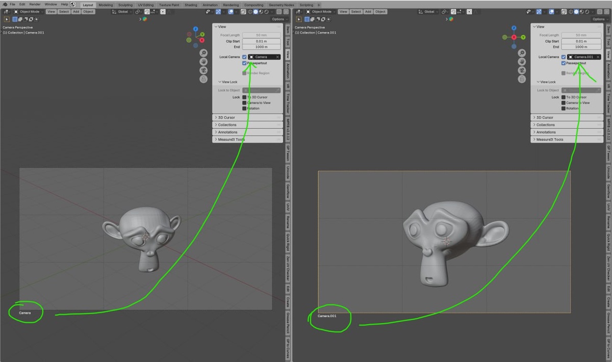 Как прикрепить каждой камере свой вид во вьюпорте? Очень просто