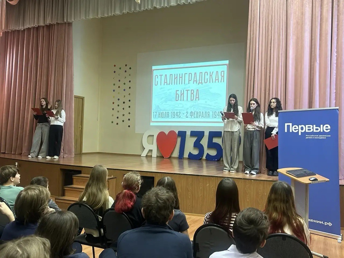 🕊 2 февраля — день, когда завершилась одна из самых кровопролитных и судьбоносных битв в истории человечества — Сталинградская. В этот знаменательный день в третьем корпусе школы 1358 прошли уроки мужества, посвящённые 81-й годовщине победы советских войск под Сталинградом. ✨ Инициаторами и ведущими этих уроков стали ученицы 8 класса — активистки первичного отделения Движения «Первых»: Дарья, Ирина, Валерия, Алиса и Стефани. С огромной ответственностью и трепетом они подготовили и провели для учеников средней и старшей школы эмоциональное, насыщенное историческими фактами и личными историями занятие под названием «Ты в памяти и в сердце, Сталинград!» 📚 Материалы для сценария девочки собрали при поддержке учителя истории Екатерины Евгеньевны Карягиной, чьи рекомендации помогли сделать повествование точным и достоверным, а также наставника медианаправления Светланы Викторовны Шкляр, которая направила юных корреспондентов в создании выразительной и зрелищной формы подачи. ❤️ В зале звуч