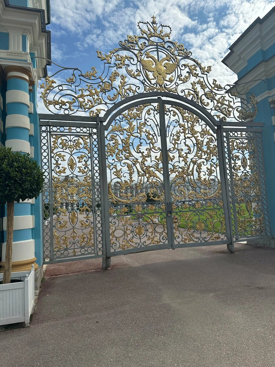 Золотые ворота созданы в середине восемнадцатого века и название свое получили из-за обилия ажурного, великолепного барочного рисунка. Двуглавый орел в центре разместился среди кружевах роскошного орнамента. Особенно завораживает витиеватость узоров, а также хитросплетение позолоты, тысячи вызолоченных кружевных деталей, десятки тысяч заклепок указывают на кропотливую работу мастеров. Особенно в лучах солнца переливается буйство позолота, притягивающее взгляд на долгое время. Внимательно разглядывая можно осознать, что этот шедевр не имеет равных по мастерству, определенно стоит посетить это потрясающее произведение искусства.