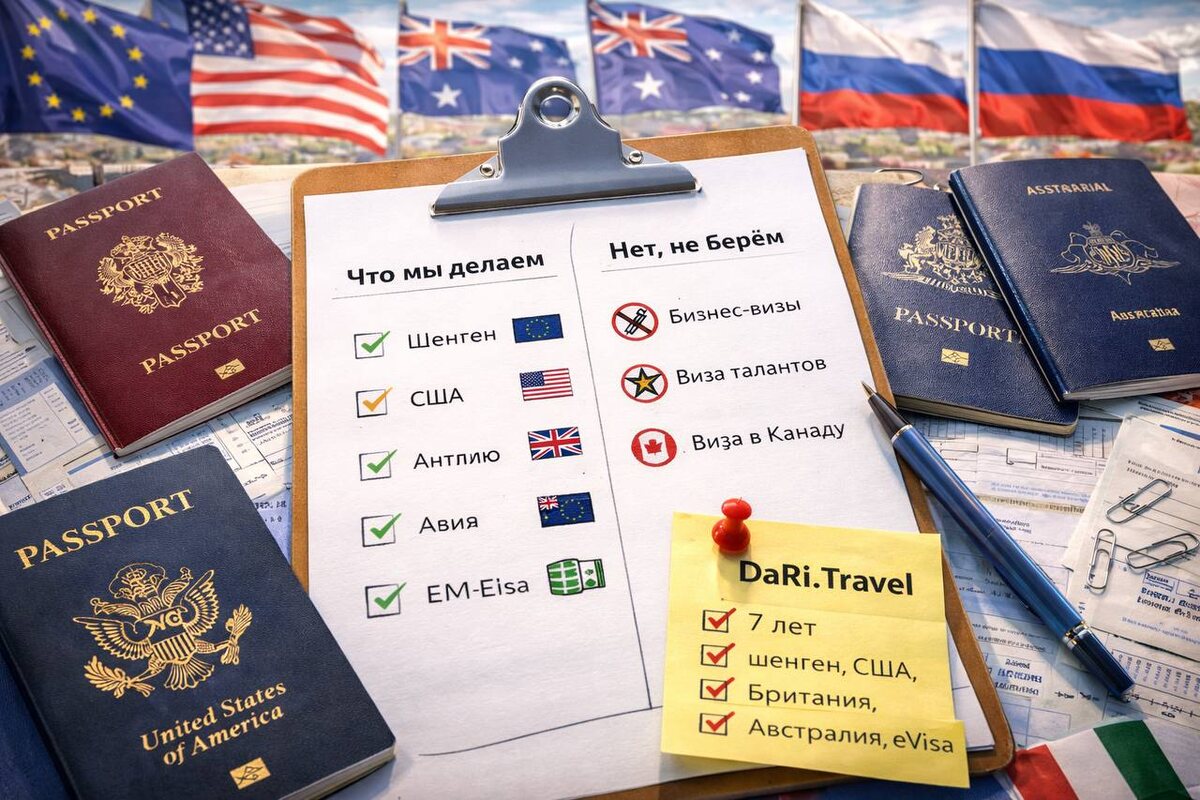 Честный гид по направлениям DaRi.Travel За 7 лет работы в визовой сфере мы поняли одну простую вещь: клиенту важнее всего прозрачность. Не обещания «оформим всё что угодно», не магические “100% гарантий”, а честный разговор: какие визы мы действительно умеем делать, где у нас сильная экспертиза — и с какими направлениями мы принципиально не работаем. Эта статья — именно про это. Без воды. Без маркетинговых сказок. По делу. DaRi.Travel — это не конвейер и не агрегатор заявок.