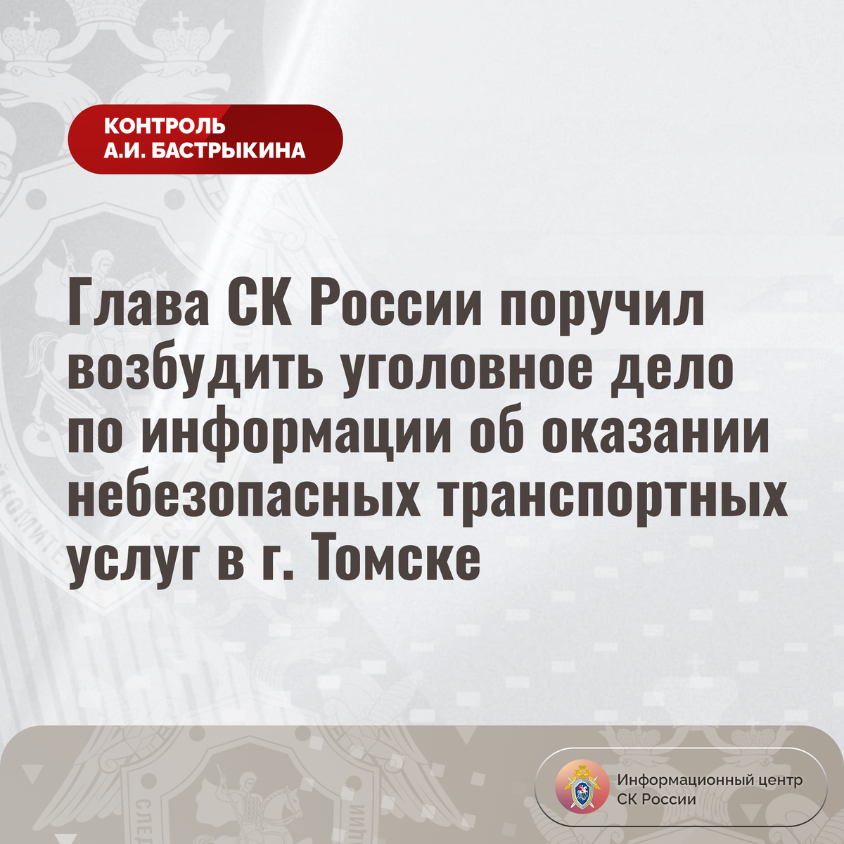 Глава СК России поручил возбудить уголовное дело по информации об оказании небезопасных транспортных услуг в г. Томске