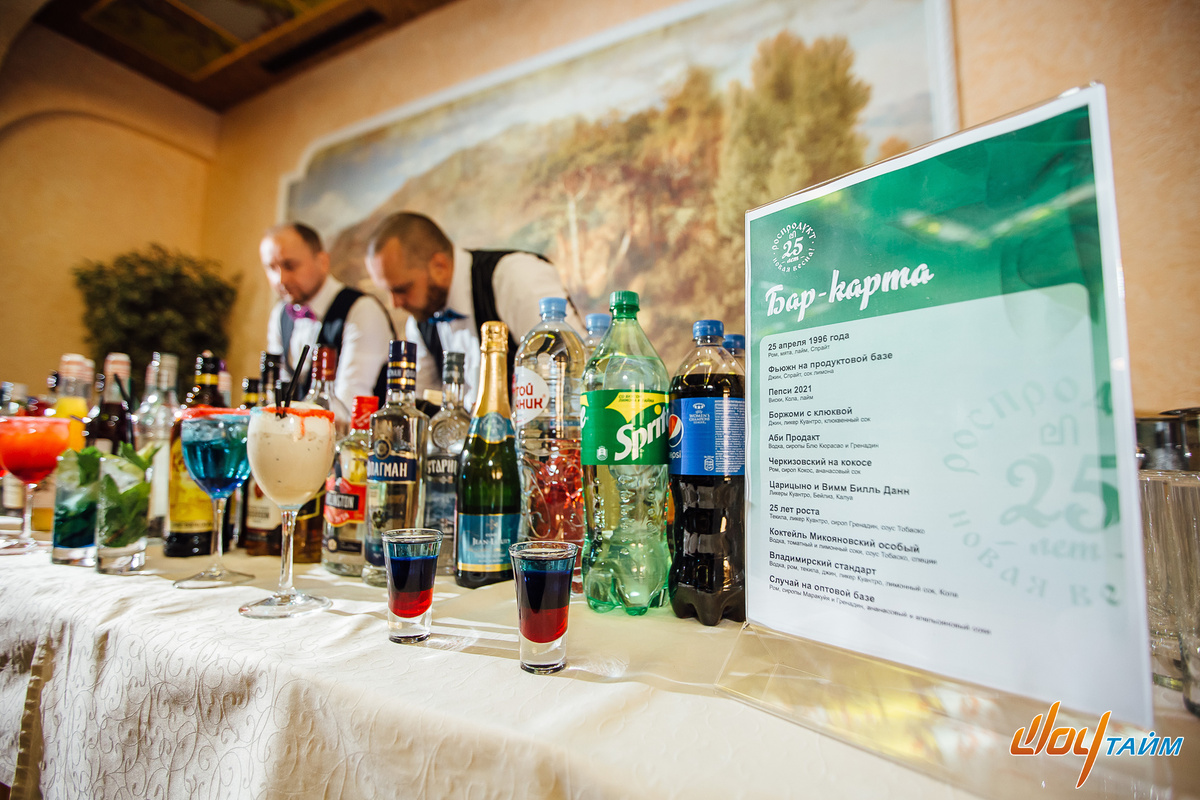 Через три недели снова применим в Рязани одну из наших фирменных фишек с тематическими коктейлями! Привозим из Москвы барменов с флейрингом, но не на один номер, на первую половину вечера, и не на сцену, а в бар. Да, это дороже, но смысла в этом гораздо больше: гости получают офигительный велком с клёвыми коктейлями, все названия которых — про заказчика и в тему вечеринки! При использовании такого подхода отдельной изюминкой становится сценическое выступление одного из барменов во второй части вечера. К этому моменту он обычно уже становится гостям практически родным, благодаря велкому и тематической барной карте. полной внутренних приколов... Подробнее тут Или тут Фото Евгения Голикова, отсюда