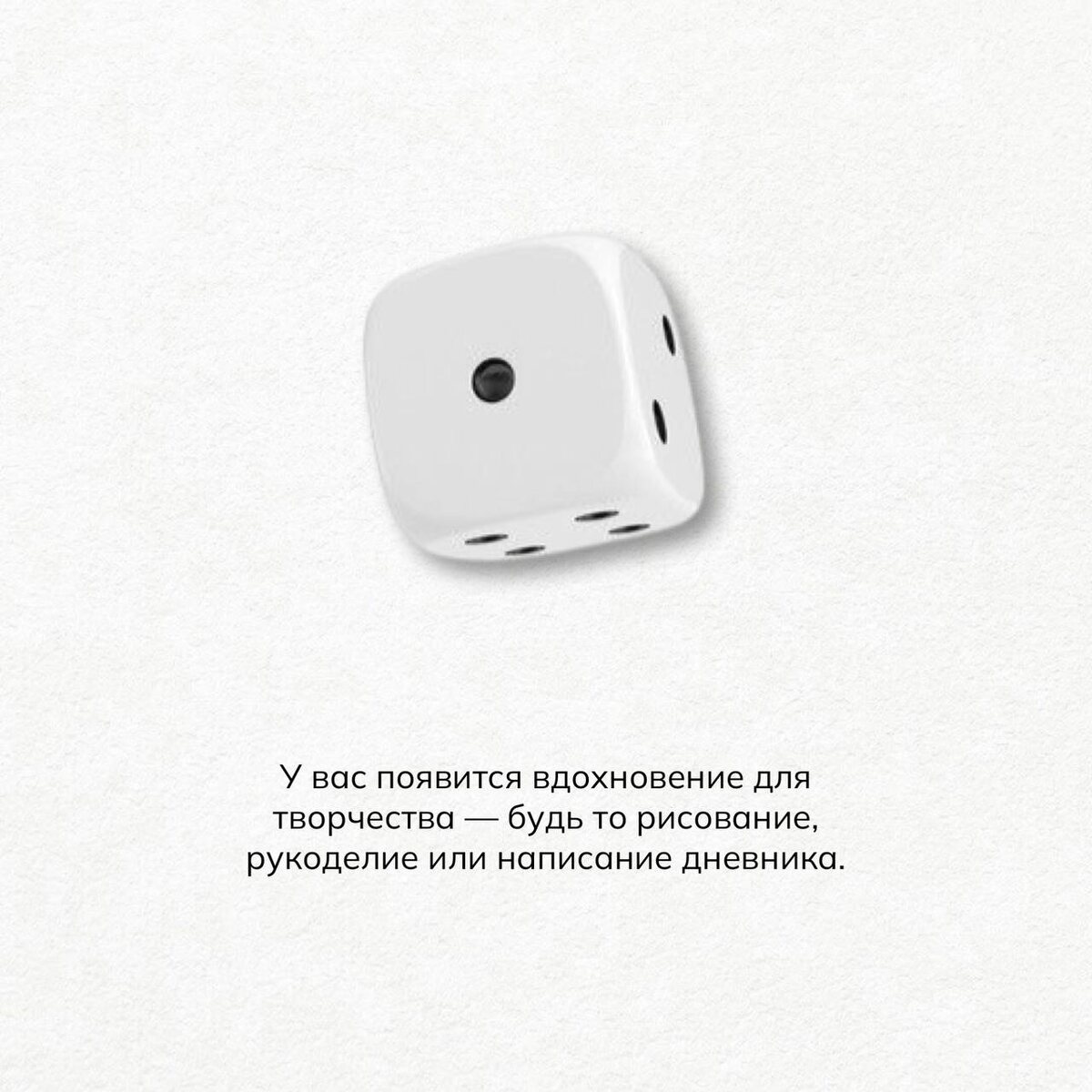 … Самое время узнать, что приготовила вам следующая! Что нужно сделать, чтобы получить свое предсказание: 1️⃣Переходите в комменты; 2️⃣Отправляете смайлик игрального кубика (можно нажать на уже оставленный там кубик и «бросить» его заново) 🎲 А дальше телеграм все делает за вас — какое число выпадет, так тому и быть! И не забудьте поставить лайк ❤️, иначе не сбудется