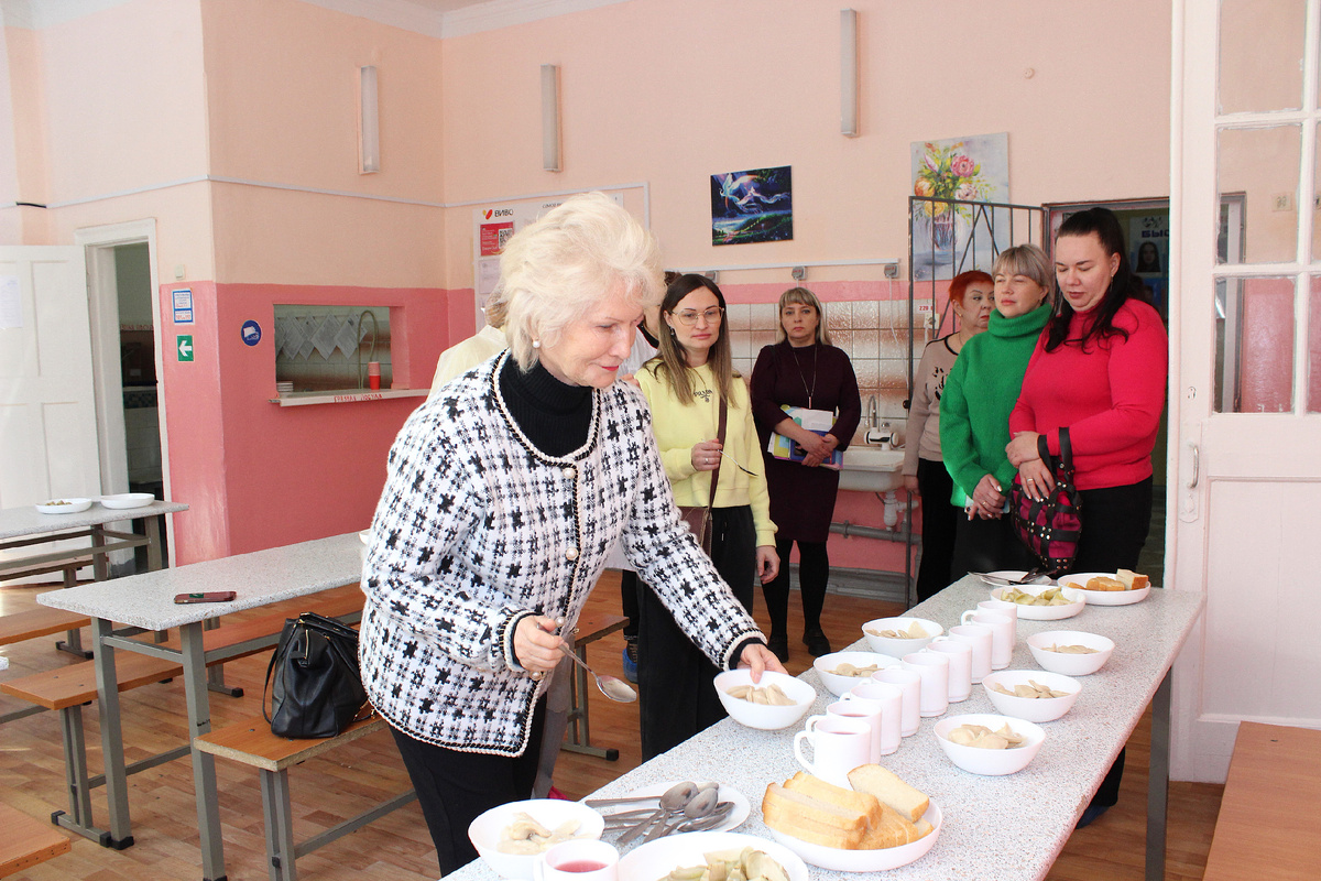 4 февраля с мониторингом столовую МОУ СШ № 35 в Краснооктябрьском районе Волгограда посетили представители Общественной палаты региона, Ассоциации «ПСПиОН», оператора питания и родители учащихся. Пищеблок этого объекта работает как буфет-раздаточная. Еду готовят на мастер-кухне и доставляют в термосах. На контейнерах с едой есть маркировка с названием блюда, весом и временем приготовления. Комиссия оценивала меню, размеры порций, своевременное накрытие, соблюдение температурного режима готовых блюд и напитков, уборку и подготовку обеденного зала и другие показатели. Так, в этот день на столах для льготной категории школьников стояли чай каркаде с сахаром, соленый помидор, пшеничный хлеб и вареники с картошкой. Участники контроля, также попробовавшие завтрак, отметили, что блюдо теплое, изделия хорошо сохранили форму, не развалились, легко отделяются друг от друга, смазаны сливочным маслом, но было рекомендовано перемешивать их перед подачей. За родительскую плату детям давали суп «Кра