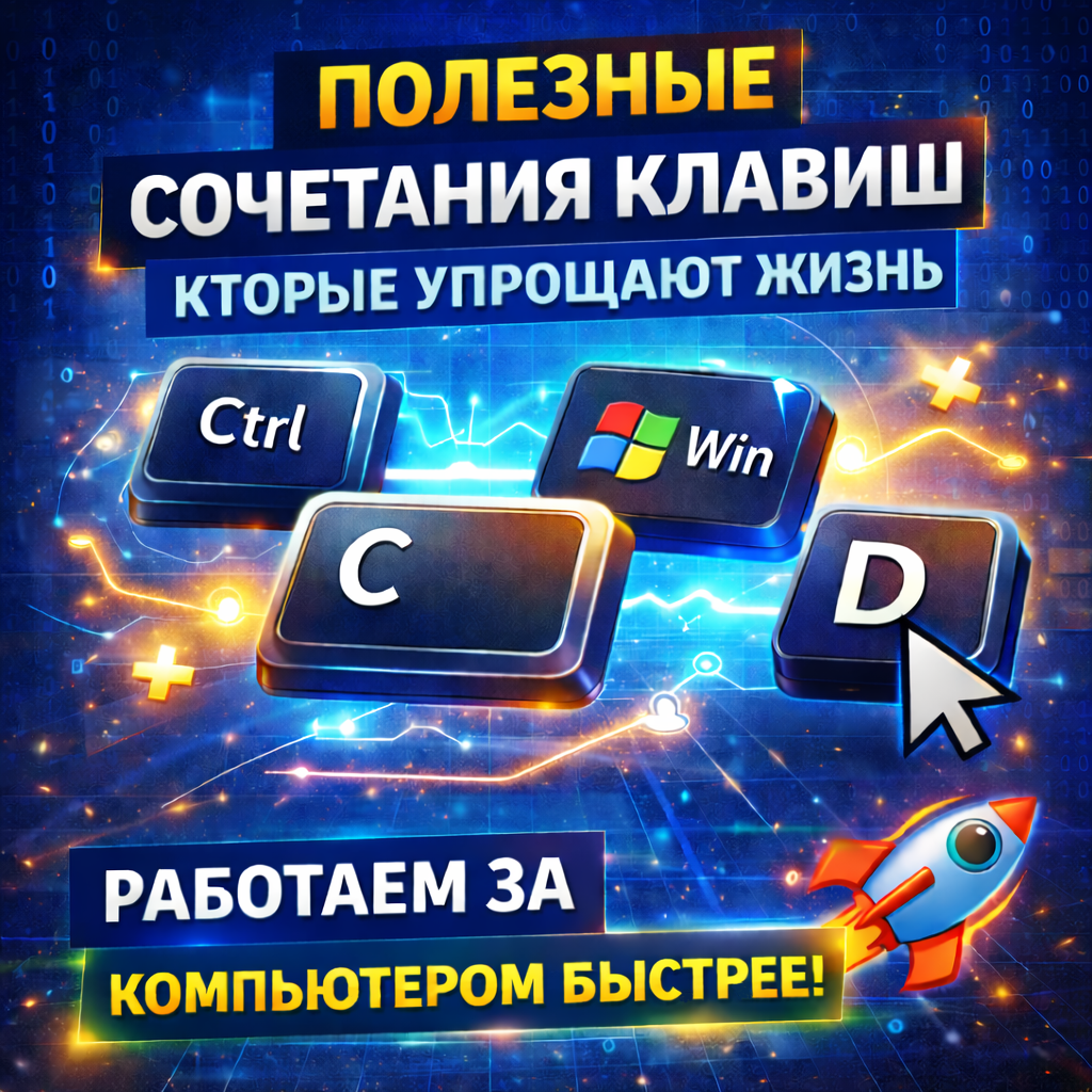Большинство пользователей знают только Ctrl + C и Ctrl + V. Но в Windows есть десятки сочетаний клавиш, которые экономят время, нервы и лишние движения мышкой. В этой статье собрал самые ходовые и реально полезные комбинации, которые пригодятся каждый день, даже если вы не айтишник. Несколько причин, почему к ним быстро привыкаешь: После пары дней использования возвращаться к мышке уже не хочется. Эти комбинации работают почти везде: Полезно не только для текста, но и для файлов. Клавиша Win открывает массу полезных возможностей: Очень удобно для повседневной работы. Если вы часто работаете с несколькими программами: Идеально для ноутбуков и небольших экранов. Полезно, когда мышка под рукой не сразу: Эти комбинации часто спасают в нестандартных ситуациях. Работает почти во всех браузерах: Очень ускоряет работу с текстом и сайтами. Горячие клавиши - это не «фишка для профессионалов», а удобный инструмент для каждого. Если вы запомните хотя бы 5-7 сочетаний из этой статьи, скорость работ