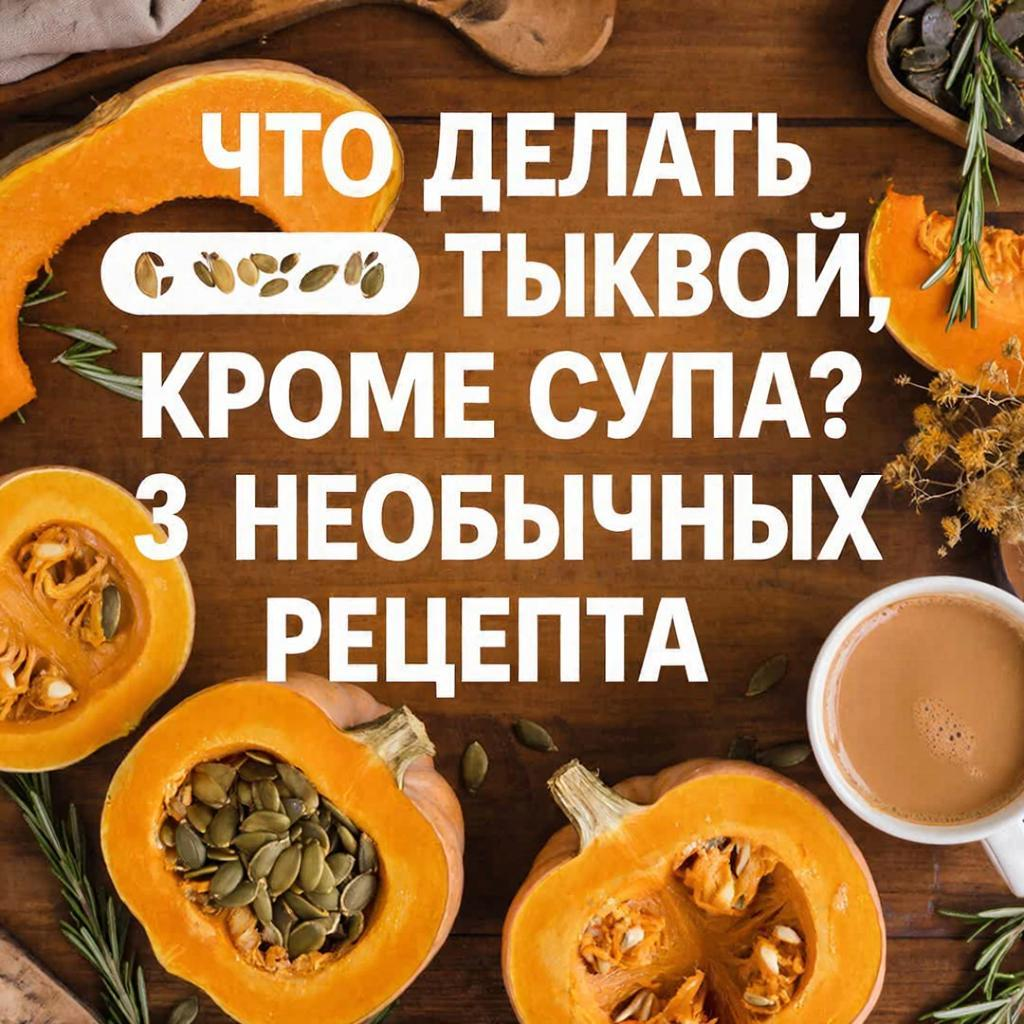 Почему стоит попробовать: Что нужно (на 2–3 порции): Как готовить: 1. Тыкву натрите на мелкой тёрке, слегка отожмите сок. 2. Добавьте яйцо, мёд, специи, перемешайте. 3. Всыпьте муку, замесите тесто (как на оладьи). 4. Жарьте на среднем огне по 2–3 минуты с каждой стороны до золотистой корочки. Подавайте: со сметаной, взбитыми сливками или дополнительным мёдом. Лайфхак: Что нужно (на 2 порции): Как готовить: 1. Обжарьте лук на оливковом масле до прозрачности. 2. Добавьте рис, помешивайте 2 минуты. 3. Влейте вино, дайте выпариться. 4. Постепенно добавляйте бульон (по 100 мл), постоянно помешивая. 5. Через 10 минут добавьте тыкву, готовьте ещё 10 минут. 6. В конце добавьте сливочное масло и пармезан, перемешайте. Подавайте: с веточкой тимьяна и дополнительной порцией сыра. Лайфхак: Почему стоит попробовать: Что нужно (на 1 порцию): Как готовить: 1. Взбейте в блендере тыкву, банан и молоко до однородной массы. 2. Перелейте в миску. 3. Сверху выложите гранолу, семена и корицу. Подавайте