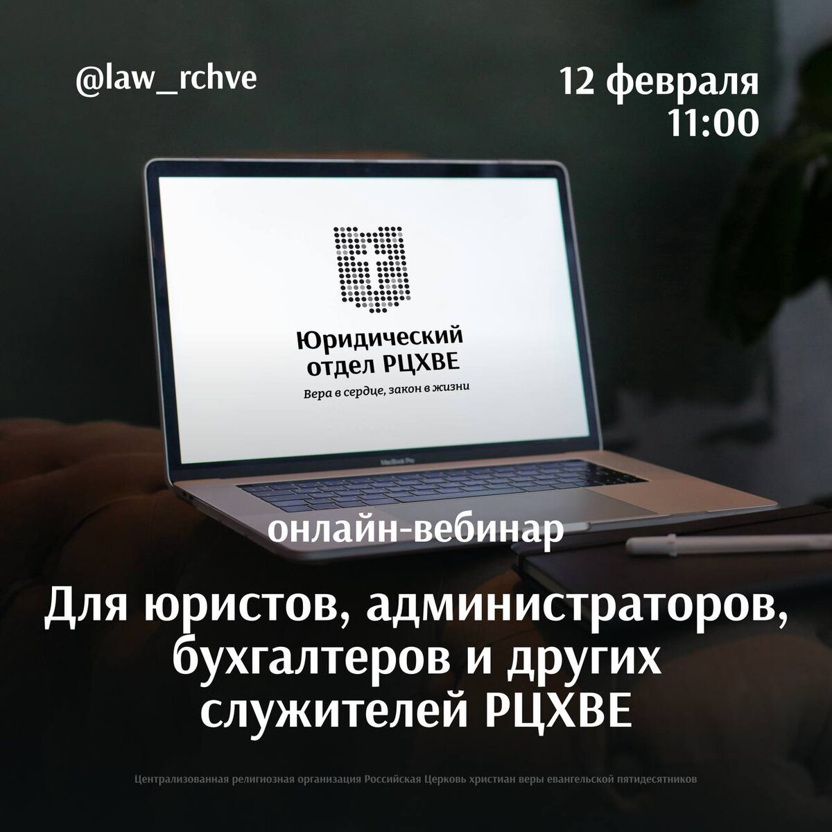 12 февраля в 11:00 (мск) пройдёт вебинар для юристов, администраторов, бухгалтеров и других служителей РЦХВЕ
