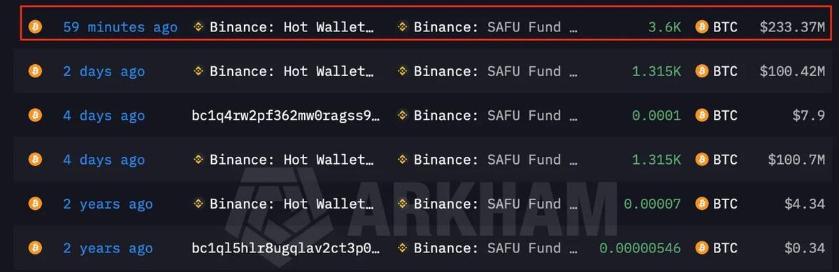 🔸Binance приобрела ещё 3 600 BTC ($33,37 млн) для фонда SAFU. Общий объём покупок составил 6 230 BTC (около $403,54 млн).