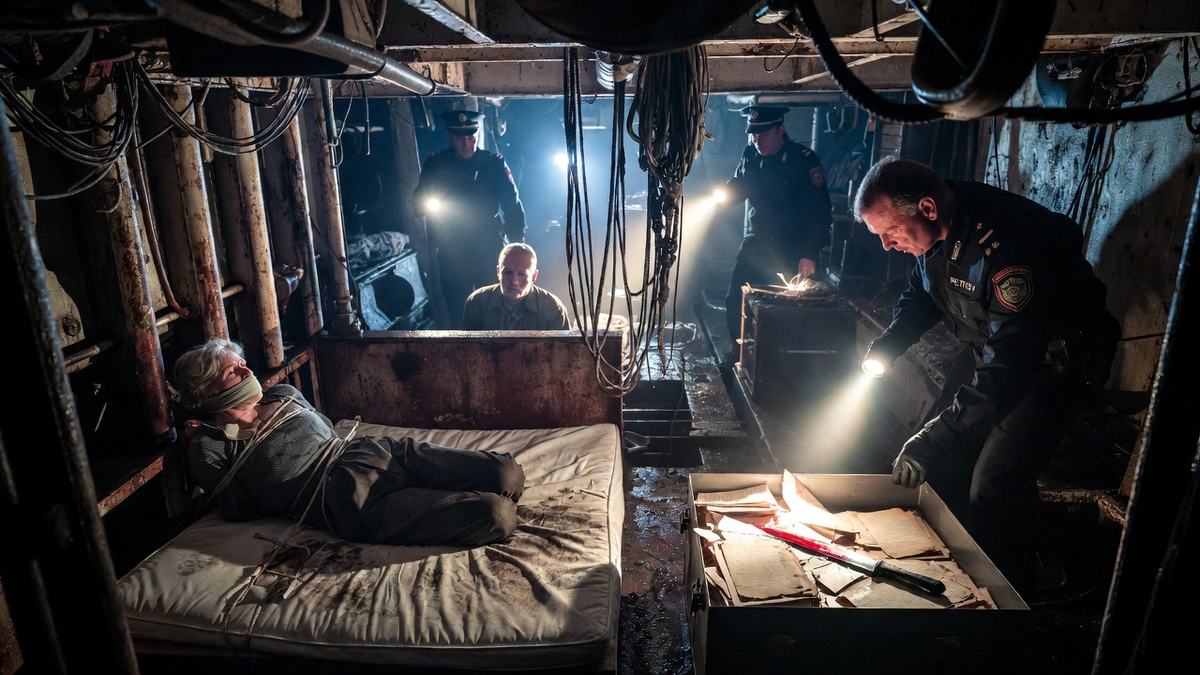 Обнаружение потайного лаза повергло всех в состояние сдавленной паники. Майор Петров, отбросив осторожность, приказал провести тотальный обыск всех помещений ниже ватерлинии. К нему присоединились оба матроса, вооружённые фонарями и служебными пистолетами. Артемий, сославшись на своё знание планировки (которое он приобрёл за эти дни), вызвался идти с ними. Петров, после секундного колебания, согласился — холодный аналитический ум искусствоведа мог быть полезен среди хаоса труб и механизмов. Спуск по узкой, скользкой лестнице ввел их в другой мир. Здесь, под роскошными салонами и каютами, царила индустриальная грязь и сырость. Воздух был густым, пахнущим мазутом, ржавчиной и стоячей водой. Мощные балки каркаса, опутанные паутиной труб и проводов, отбрасывали при свете фонарей гигантские, пляшущие тени. Гул генератора здесь был оглушительным. Это был идеальный лабиринт для того, чтобы спрятать человека или… тело. Они двигались медленно, проверяя каждый угол, каждый технический отсек. Пер