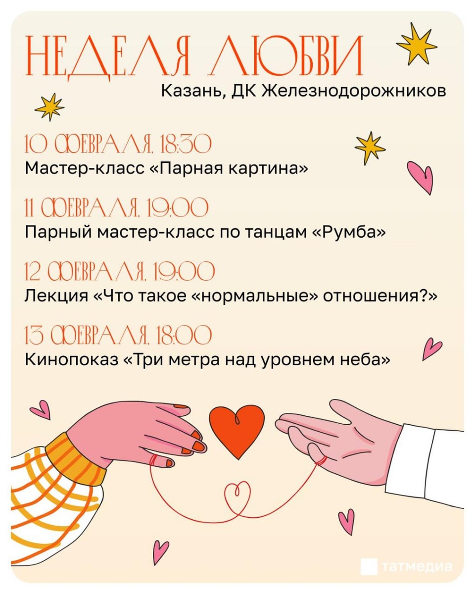 » ✨С 9 по 15 февраля для казанцев будет организована череда тематических мероприятий: танцевальный и художественный мастер-классы, лекции и кинопоказ. Вход свободный, на мастер-класс необходимо предварительно записаться. 📍Телефон для записи и получения дополнительной информации 590-09-35 #чакчакновости Чак-чакнорис