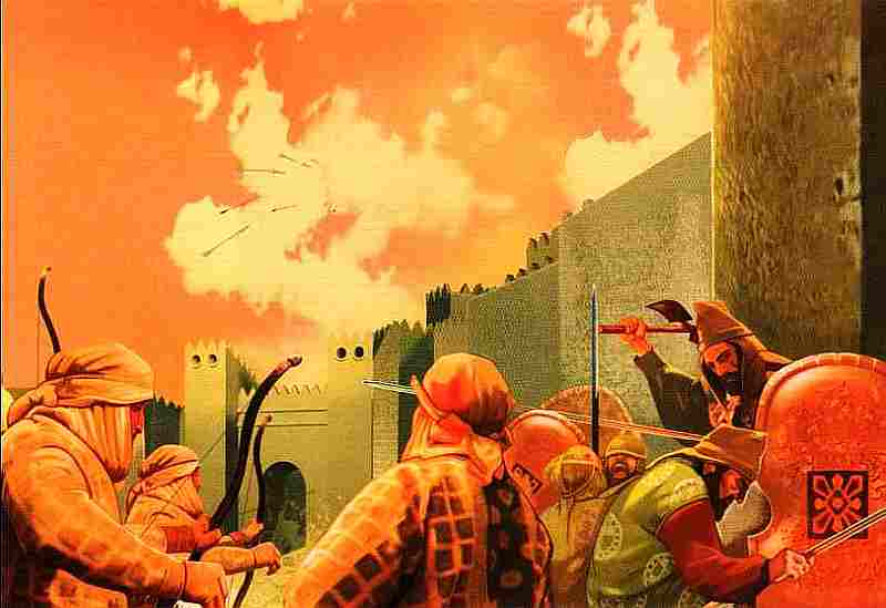 ΠΠΎΡΡΡΠ°Π½ΠΈΠ΅ Π²ΡΠ·ΡΠ΅Π²Π°Π»ΠΎ Π½Π΅ Π½Π° ΠΏΠ»ΠΎΡΠ°Π΄ΡΡ , Π° Π² ΡΠΊΠ»Π΅ΠΏΠ°Ρ ΠΊΠΎΠ»Π»Π΅ΠΊΡΠΈΠ²Π½ΠΎΠΉ ΠΏΠ°ΠΌΡΡΠΈ. Π ΡΡΠΌΠ½ΡΡ Π»Π°Π²ΠΊΠ°Ρ ΡΠΈΠ΄ΠΎΠ½ΡΠΊΠΈΡ ΡΡΠ΅ΠΊΠ»ΠΎΠ΄ΡΠ²ΠΎΠ², Π³Π΄Π΅ ΠΌΠ°ΡΡΠ΅ΡΠ°, ΠΎΡΠ»Π΅ΠΏΠ»ΡΠ½Π½ΡΠ΅ Π΄ΡΠΌΠΎΠΌ, ΡΠ΅ΠΏΡΠ°Π»ΠΈΡΡ ΠΎ Π΄Π°Π»ΡΠΊΠΎΠΉ ΡΠΎΠ΄ΠΈΠ½Π΅. Π ΠΊΠ°Π·Π°ΡΠΌΠ°Ρ ΠΌΠΈΠ΄ΡΠ½ΡΠΊΠΈΡ Π»ΡΡΠ½ΠΈΠΊΠΎΠ², ΠΊΠΎΡΠΎΡΡΡ ΠΊΠΎΡΠΌΠΈΠ»ΠΈ Ρ ΡΠΆΠ΅ Π°ΡΡΠΈΡΠΈΠΉΡΠΊΠΈΡ ΡΠ΅Π½ΠΊΠΎΠ². ΠΠ° ΠΏΠ»Π°Π½ΡΠ°ΡΠΈΡΡ Ρ Π³ΠΎΡΠΎΠ΄Π°, Π³Π΄Π΅ Π·Π΅ΠΌΠ»Π΅Π΄Π΅Π»ΡΡΡ ΠΈΠ· ΠΠ°Π²ΠΈΠ»ΠΎΠ½ΠΈΠΈ, ΠΎΠ±ΡΠ°Π±Π°ΡΡΠ²Π°Ρ Π·Π΅ΠΌΠ»Ρ, Π²ΠΈΠ΄Π΅Π»ΠΈ Π² ΠΊΠ°ΠΆΠ΄ΠΎΠΌ ΠΊΠΎΠ»ΠΎΡΠ΅ ΠΏΡΠΈΠ·ΡΠ°ΠΊ ΡΠ²ΠΎΠΈΡ Π·Π°Π³ΡΠ±Π»Π΅Π½Π½ΡΡ Π΄Π΅ΡΠ΅ΠΉ.