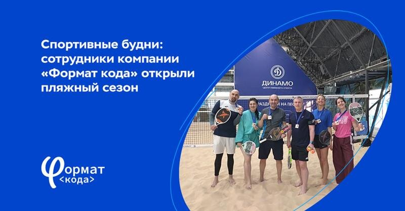 За окном — -20, а в «Формате кода» вновь царит атмосфера жаркого лета. Новый спортивный сезон сотрудники компании открыли играми в пляжный теннис. Коллеги собрались на кортах центра «Динамо» в Санкт-Петербурге, чтобы попробовать свои силы в этом молодом и динамично развивающемся виде спорта. Пляжный теннис сочетает в себе всё самое лучшее: физическую нагрузку, приятный отдых, отличное настроение и возможность провести время в хорошей компании. Спортивно‑развлекательное мероприятие организовал наш коллега, руководитель маркетинговых проектов Борис Кулаков. Вот что Борис говорит о пляжном теннисе: «Это очень динамичный, красивый и увлекательный вид спорта, который дарит эмоции лета, тепло и солнечное настроение круглый год, в чем коллеги и убедились на наших играх. Все участники очень быстро освоились на песке с ракеткой и получили массу позитивных эмоций». В утренний интенсив вошли: мастер‑класс от профессионального тренера, разминочный микст и тайм‑сеты со сменой партнёров. Все участни