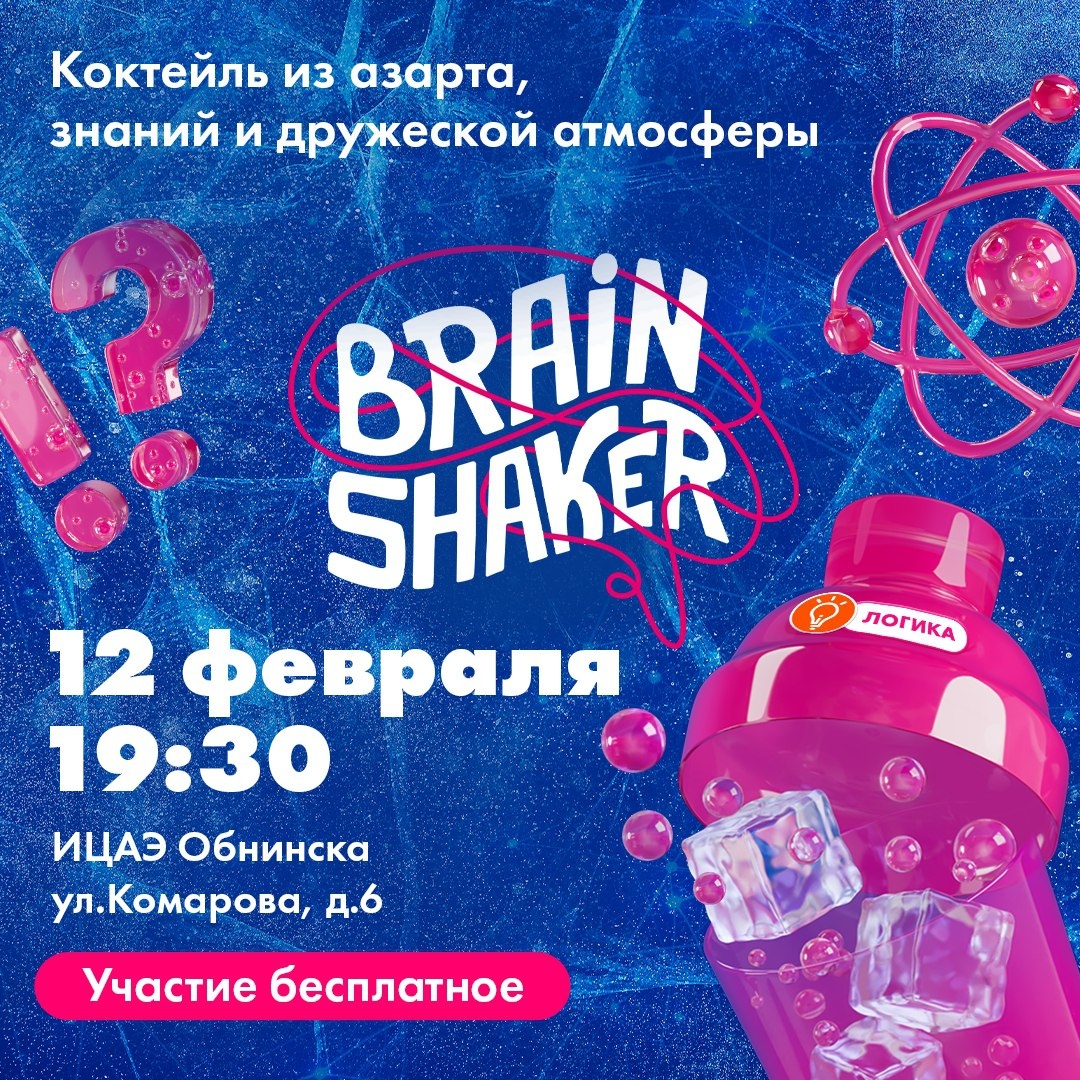! 🧠 Тематическая игра интеллектуального турнира BrainShaker пройдёт 12 февраля в 19 городах России и в Минске. Её организует сеть Информационных центров по атомной энергии (ИЦАЭ) BrainShaker — это командный интеллектуальный турнир, который включает в себя пять непохожих друг на друга туров. Участников ждёт коктейль из логики, знаний, дружбы, кубика льда и азарта. ❤️ Первая игра 5 сезона турнира BrainShaker будет посвящена любви к науке. Участникам предлагается поддержать эту тему, выбрав креативные костюмы или добавив в свой образ элементы красного цвета. ✅ Как принять участие: - собрать команду от 3 до 6 человек; - зарегистрироваться: https://myatom.ru/brainshaker-registration/?utm_source=site Команды, которые примут участие минимум в трёх играх и в своих городах станут лидерами по количеству набранных баллов, смогут посоревноваться в финале BrainShaker. 📍Где: ИЦАЭ Обнинска (ул.Комарова, д.6, 1 этаж) 🗓Когда: 12 февраля, 19:30 👍 Подписаться | Ваша реклама