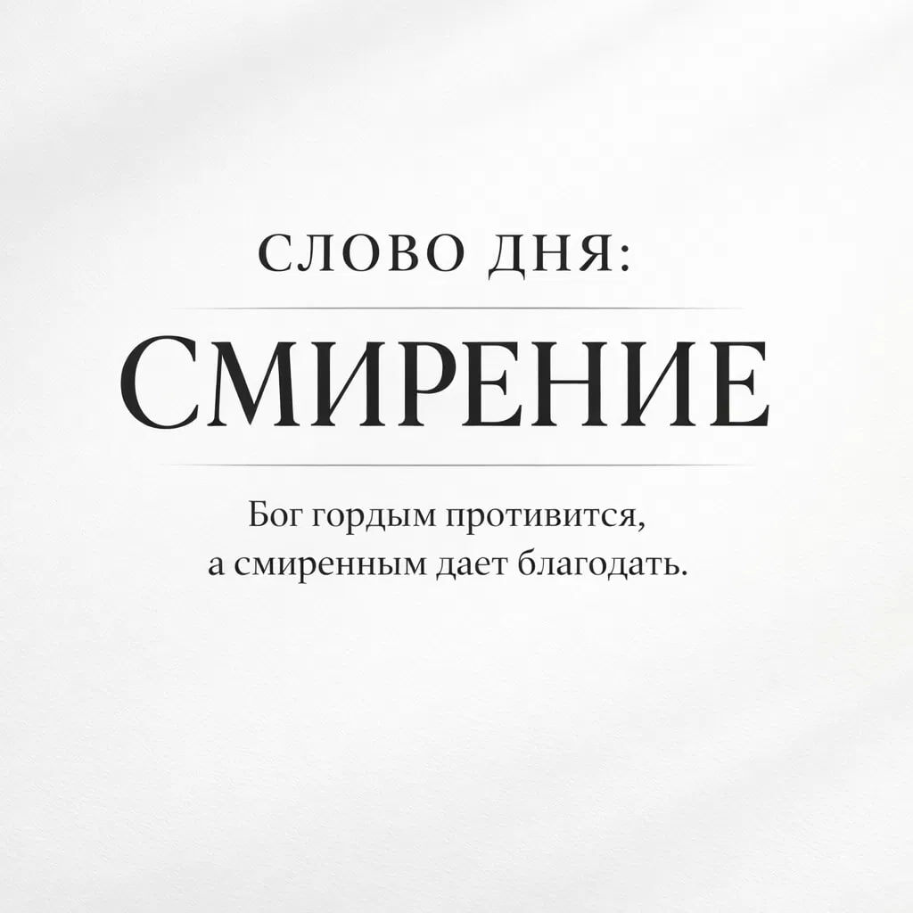 «Бог гордым противится, а смиренным дает благодать» (Иак. 4:6). Смирение — это не унижение, а трезвое видение себя, своих сил и своего места перед Богом. Это основа всех добродетелей, которая открывает сердце для благодати. Практика дня: Постарайтесь сегодня не спорить и не доказывать свою правоту, а просто принять ситуацию.