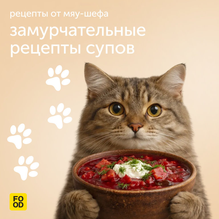 Мяу-шеф обожает ходить на обед и никому не советует его пропускать. Котик позаботился о вас и подобрал вкусные рецепты первых блюд. Уверены, что домашние попросят добавки.
