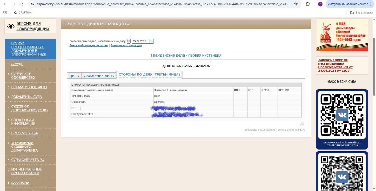 ) Дроппер из Москвы ответит перед судом в Ставрополе По предыдущей новости об изменении в ГПК, РФ которая напрямую касается всех пострадавших от мошенников. Заявление рассмотрел КС РФ буквально в декабре 2025 года. Потерпевшая из Ставропольского края, пыталась взыскать ущерб с дроппера, проживающего в Московской области. По общему правилу (ст. 28 ГПК РФ) иск о взыскании денег нужно предъявлять по месту жительства ответчика. То есть ставропольчанке пришлось бы ехать в суд Москвы, чтобы судиться с человеком, который, получив от мошенников копеечный процент, стал формальным получателем её крупной суммы. Конституционный Суд признал, что такое правило в делах о хищении средств со счетов может нарушать право граждан на доступ к правосудию, создавая необоснованные препятствия. Теперь законодателям предстоит изменить ГПК, чтобы потерпевшие могли подавать иски: По своему месту жительства (в Ставрополе), Или по месту ведения уголовного дела, А не только по месту жительства дроппера (в Мо