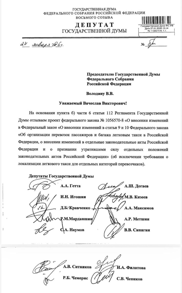 … Исключения в виде квоты для самозанятых таксистов по локализации автомобилей не будет. Депутаты отозвали свой законопроект. При этом если внесли с обоснованием, то отозвали молча. 🔞 Залипнуть в чате с хорошими людьми 👣 Зайти в курилку на конечной остановке